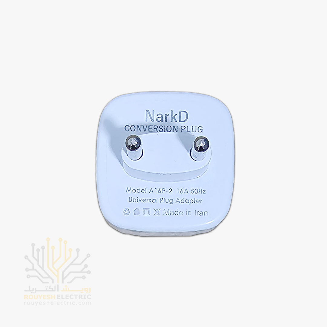 تبدیل 3 به 2 برند نارک دی 16 آمپر مدل A16P2 دوشاخه آهنی چراغ دار سفید