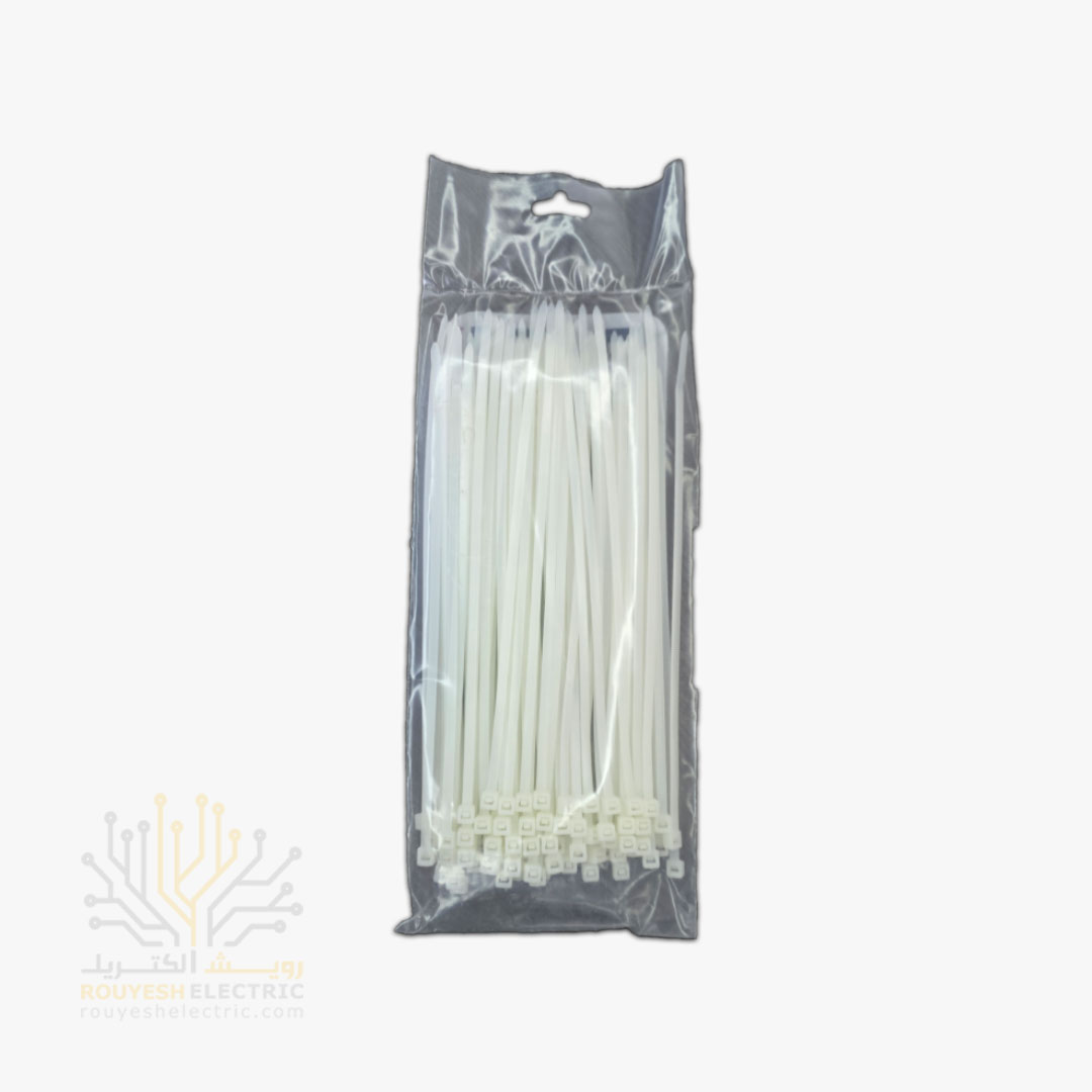 بست کمربندی یه جور قفل پلاستیکی کوچیکه که شکلش شبیه کمربنده. طولش حدود 20 سانته و عرضش 3.6 میلی متر، یعنی اندازهای که برای جمعوجور کردن سیمها یا بستهبندی خیلی مناسبه. جنسش از پلاستیکه و رنگش سفیده، که باعث میشه توی محیطهای مختلف خیلی راحت دیده بشه یا با بقیه وسایل هماهنگ بشه. بستهبندیاش به صورت نایلونی و تکیه، ولی داخل هر بسته ۱۰۰ تا بست هست. اگه بخوای عمده بخری، توی هر کارتن 160 بسته قرار میگیره. حداقل خرید هم فقط یه بستهست، پس برای مصرف کم هم مناسبه.
