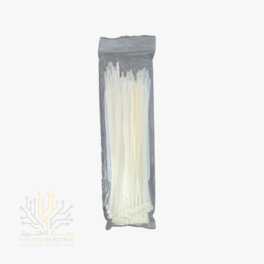 این بست کمربندی ظاهرش مثل یه کمربند پلاستیکی هست، حدود ۳۰ سانت طول داره و عرضش هم 4.8 میلیمتره. بدنهاش از پلاستیک ساخته شده و رنگش سفیده. هر بسته به صورت نایلونی ارائه میشه و داخل هر بسته ۱۰۰ عدد بست وجود داره. برای خرید هم حداقل میتونی یه بسته سفارش بدی.