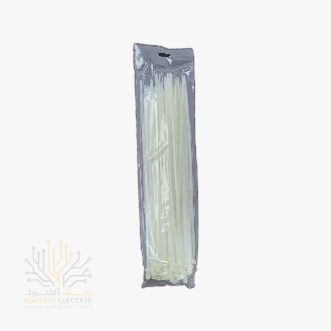 این بست کمربندی شکلش مثل یه کمربند کوچیک و پلاستیکیه. طولش حدود ۳۷ سانته و عرضش نزدیک به ۴.۸ میلیمتره. رنگ بدنه سفیده و جنسش از پلاستیک باکیفیته. هر بسته که به صورت نایلونی بستهبندی میشه، ۱۰۰ عدد بست داخلش داره. حداقل خرید هم یه بستهست و هر کارتن شامل ۸۵ بسته میشه.