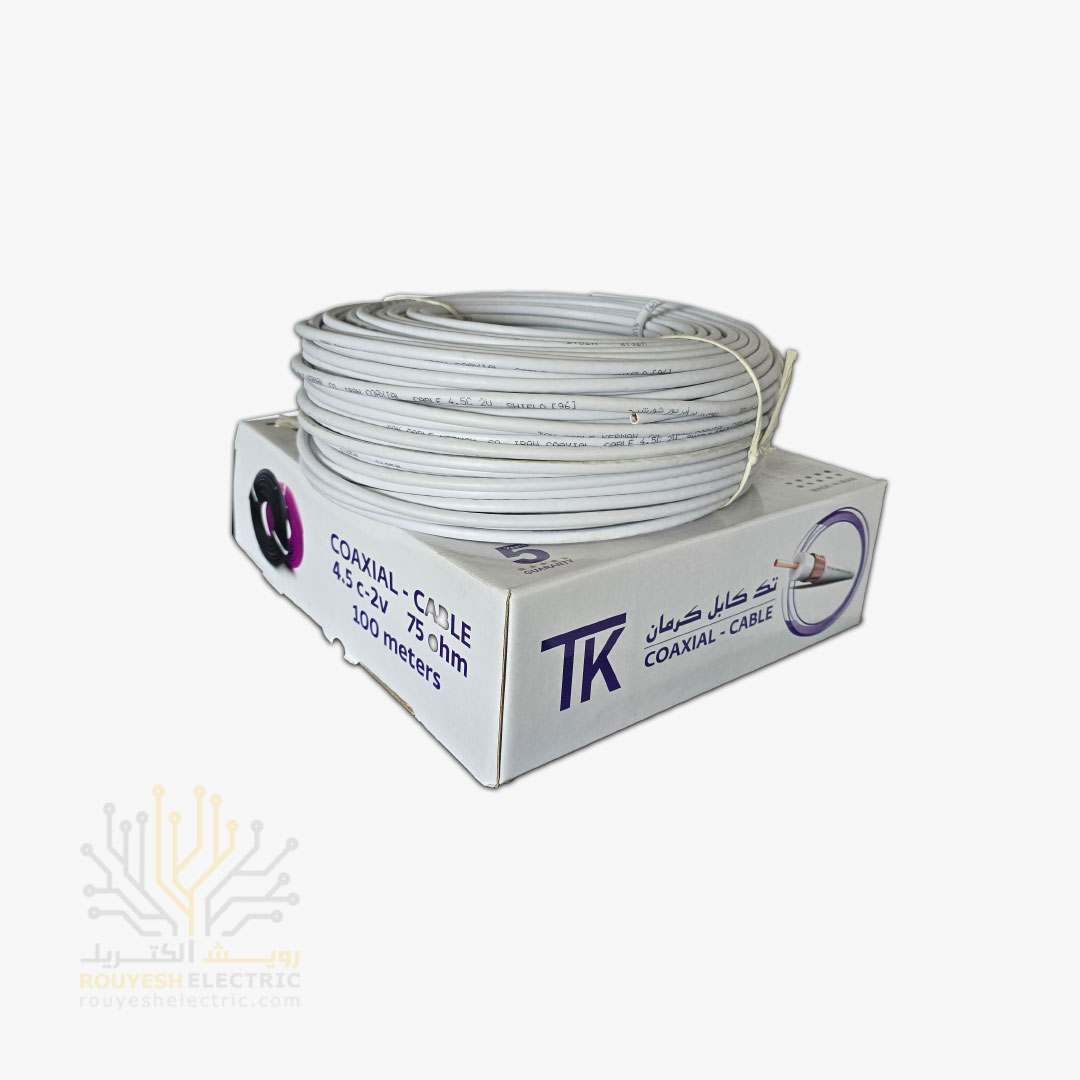 کابل آنتن برند تک کابل کرمان مدل مروارید مغز رنگ مس 0/9 شیلد رنگ مس 96 رشته حلقه 100 متری