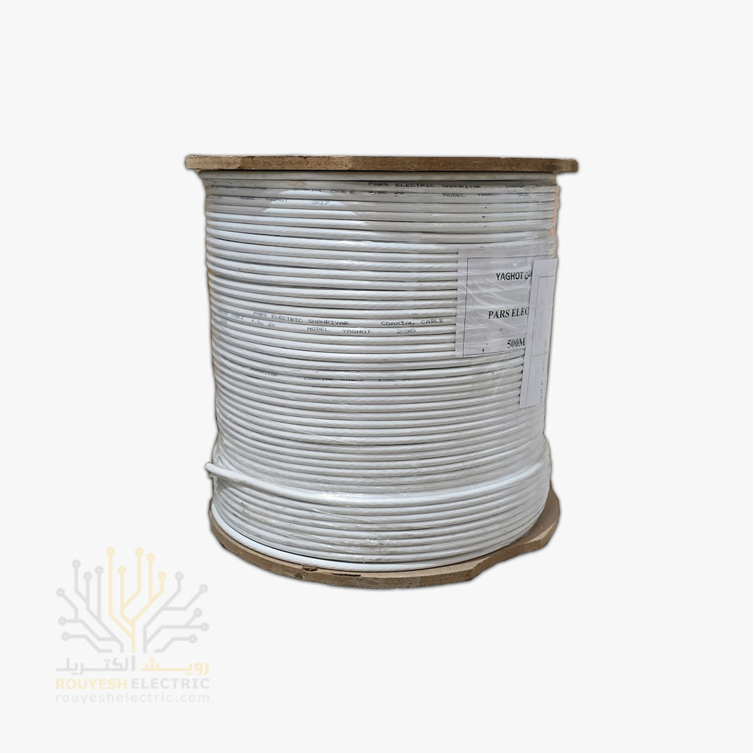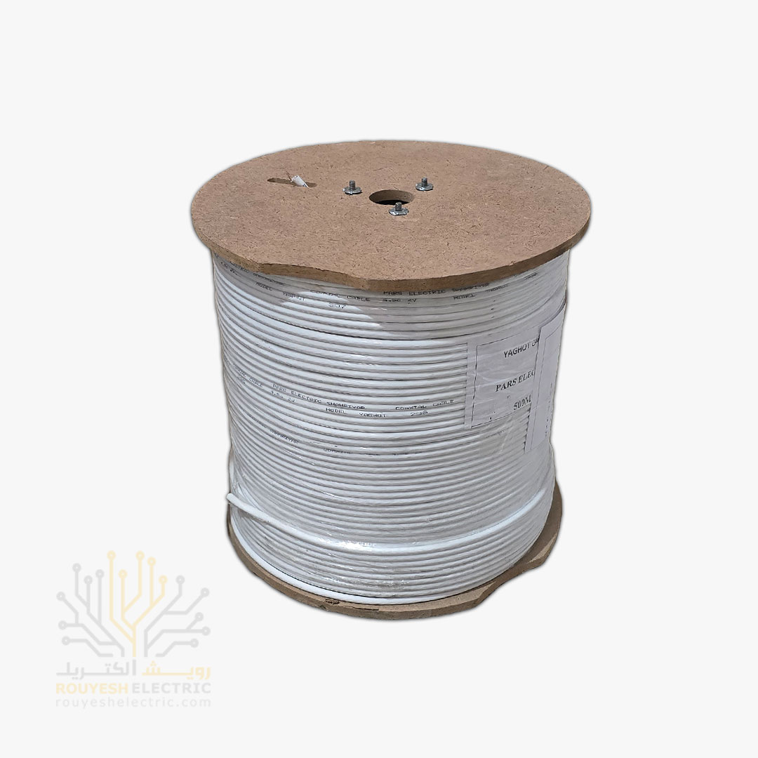 کابل آنتن برند پارس الکتریک مدل یاقوت مغز مس 0/8 شیلد رنگ مس 64 رشته قرقره 500 متری