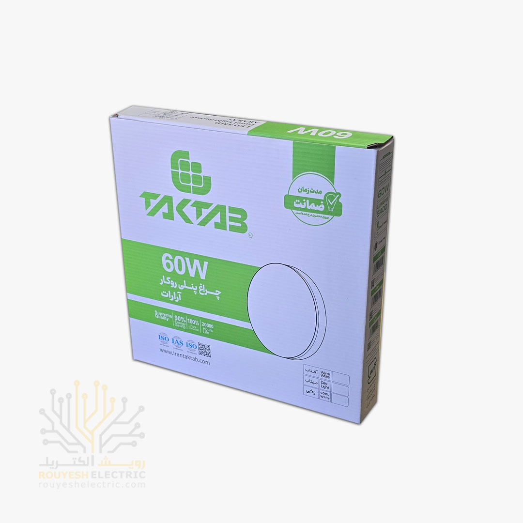 پنل سقفی روکار 60 وات برند تک تاب مدل آرارات دایره استاندارد رنگ یخی