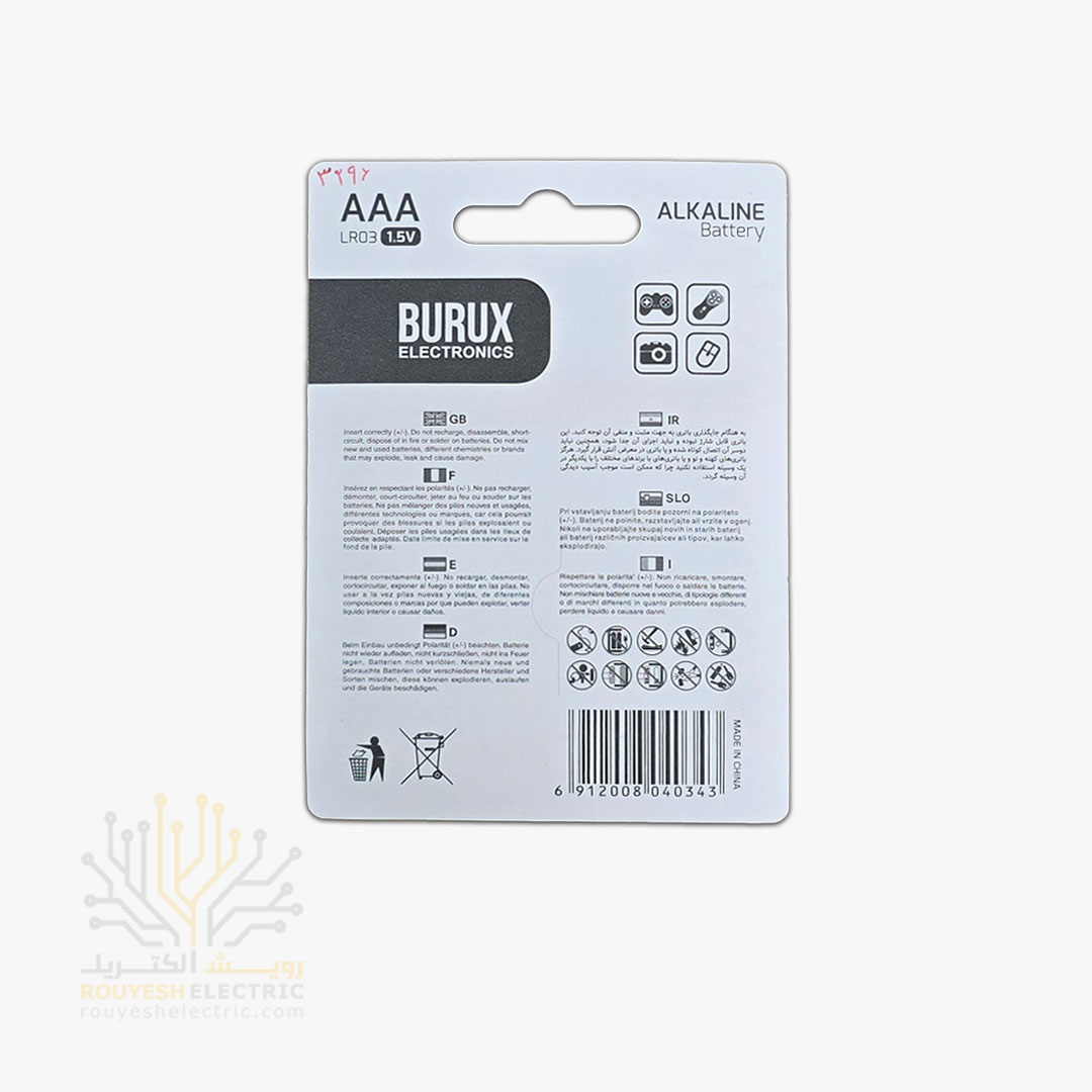 باطری نیم قلمی سوپر آلکالاین برند بروکس کارتی 4 عددی