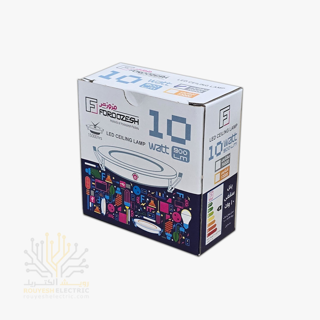 پنل سقفی توکار 10 وات برند فروزش مدل بک لایت دایره بدنه فلز رنگ مهتابی