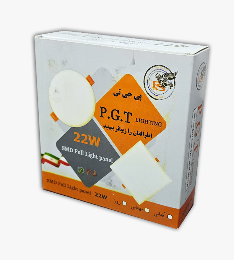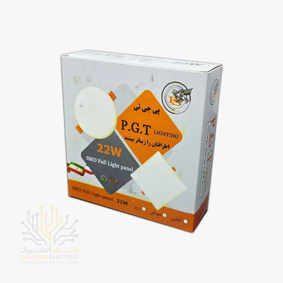 پنل سقفی توکار 22 وات برند پی جی تی PGT مدل فول لایت فنر متغیر مربع استاندارد مهتابی