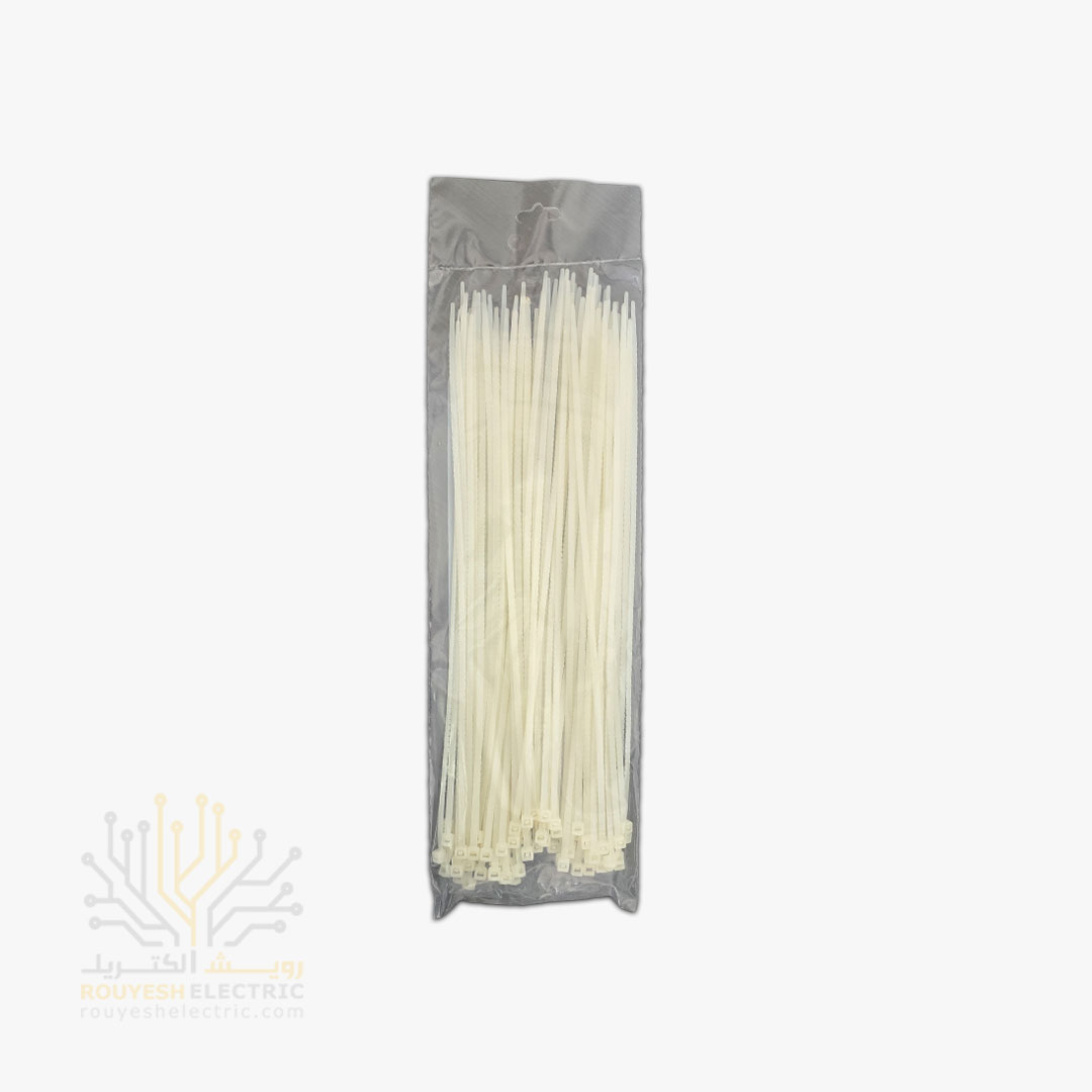 این بست کمربندی شکلش مثل یه کمربند کوچیک و پلاستیکیه. طولش حدود 30 سانته و عرضش نزدیک به 3/6 میلیمتره. رنگ بدنه سفیده و جنسش از پلاستیک باکیفیته. هر بسته که به صورت کاور پلاستیکی بستهبندی میشه، ۱۰۰ عدد بست داخلش داره. حداقل خرید هم یه بستهست و هر کارتن شامل 40 بسته میشه.
