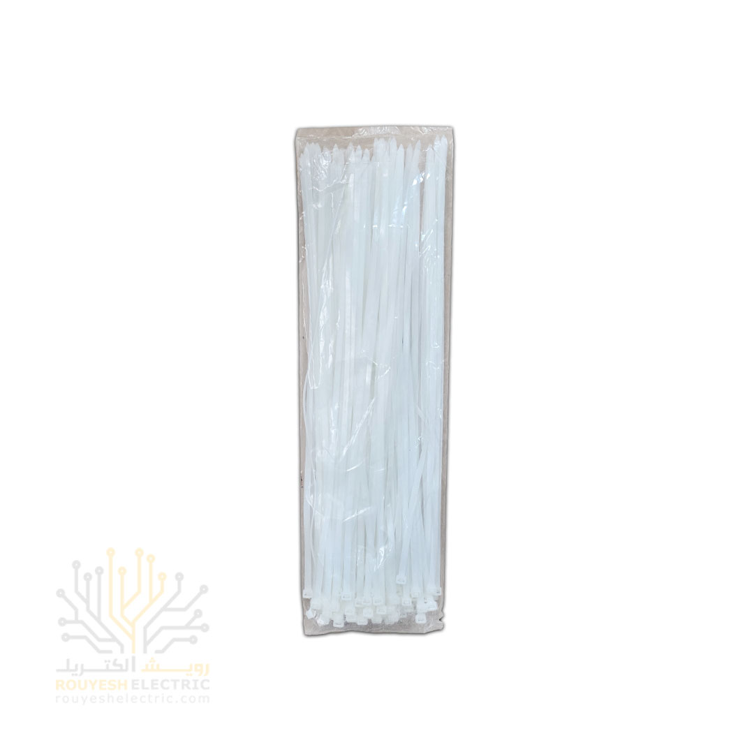 این بست کمربندی شکلش مثل یه کمربند کوچیک و پلاستیکیه. طولش حدود 55 سانته و عرضش نزدیک به 7/6 میلیمتره. رنگ بدنه سفیده و جنسش از پلاستیک باکیفیته. هر بسته که به صورت کاور پلاستیکی بستهبندی میشه، ۱۰۰ عدد بست داخلش داره. حداقل خرید هم یه بستهست و هر کارتن شامل 40 بسته میشه.