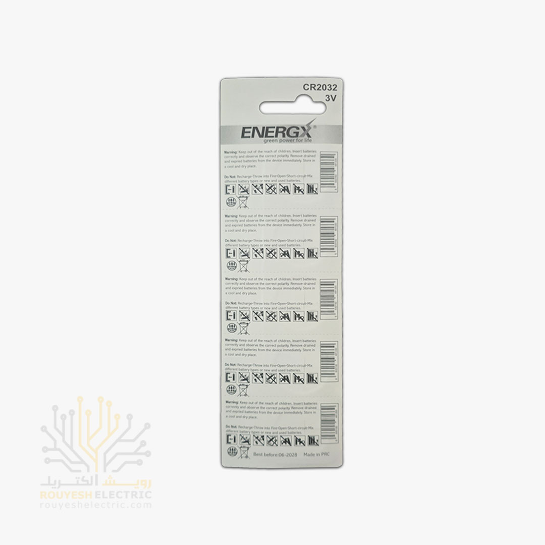 باتری سکهای 2032 برند انرژیکس، نوعی باتری لیتیومی است که در ابعاد دیسکی کوچک (با قطر 20 میلیمتر و ضخامت 3.2 میلیمتر) ساخته شده است. این نوع باتریها عموماً در تجهیزات الکترونیکی کوچک مانند ساعتهای دیجیتال، ماشین حسابها، دستگاههای پزشکی، کلیدهای کنترل راه دور، لیزرهای کوچک و سایر وسایل کممصرف استفاده میشوند. باتری انرژیکس 2032 به دلیل ظرفیت بالا و عمر طولانی، یک گزینه مطمئن برای تأمین منبع انرژی این وسایل است.