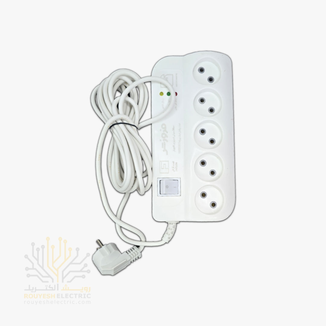 محافظ برق کامپیوتر سیار پنج خانه برند فروزش مدل FR250 بدون ارت کلید دار بدنه سفید آنالوگ 4/8 متری