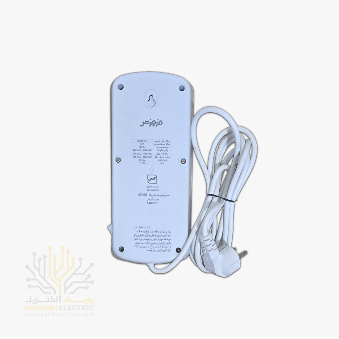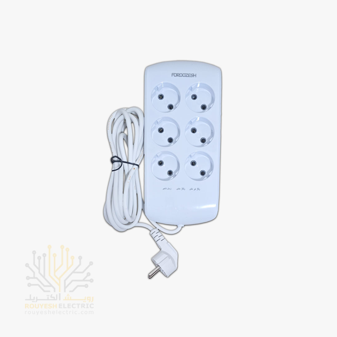 محافظ برق کامپیوتر سیار پنج خانه برند فروزش مدل FR250 بدون ارت کلید دار بدنه سفید آنالوگ 4/8 متری