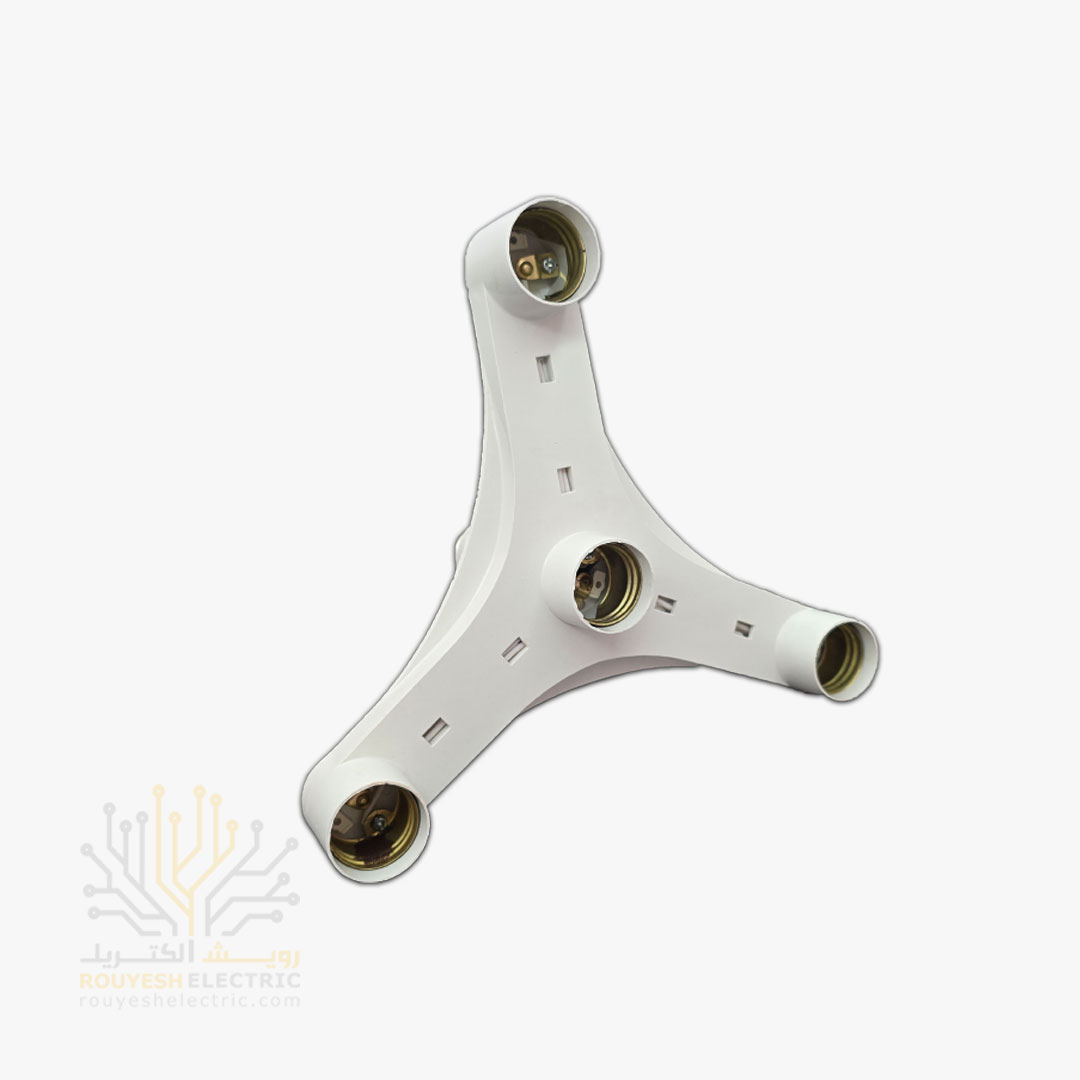 این قطعه یک رابط چندسرپیچه است که یک ورودی سرپیچ استاندارد (معمولاً E27) را به چهار سرپیچ مجزای E27 تبدیل میکند. این مبدلها معمولاً دارای طراحی شعاعی یا ستارهای هستند تا چهار لامپ را در اطراف یک نقطه مرکزی جای دهند. کیفیت ساخت بدنه (معمولاً پلاستیک نسوز یا باکالیت) و اتصالات داخلی (رسانا بودن مس یا آلومینیوم) در تعیین ایمنی و کارایی آن بسیار مهم است.