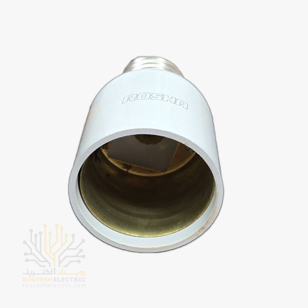 این وسیله یک آداپتور تبدیل سایز است که توسط برند «روشا» ساخته شده و ظاهرش به خاطر شکل بزرگتر سرپیچ مقصد، کمی شیپوری یا قیفی است. وظیفهاش این است که دهانه کوچکتر سرپیچ معمولی (E27) را بزرگ کند تا بتواند لامپهای قویتر و بزرگتر E40 را نگه دارد. این تبدیل به شما اجازه میدهد لامپهای قدرتمندتر را روی پایه قدیمیتر نصب کنید.