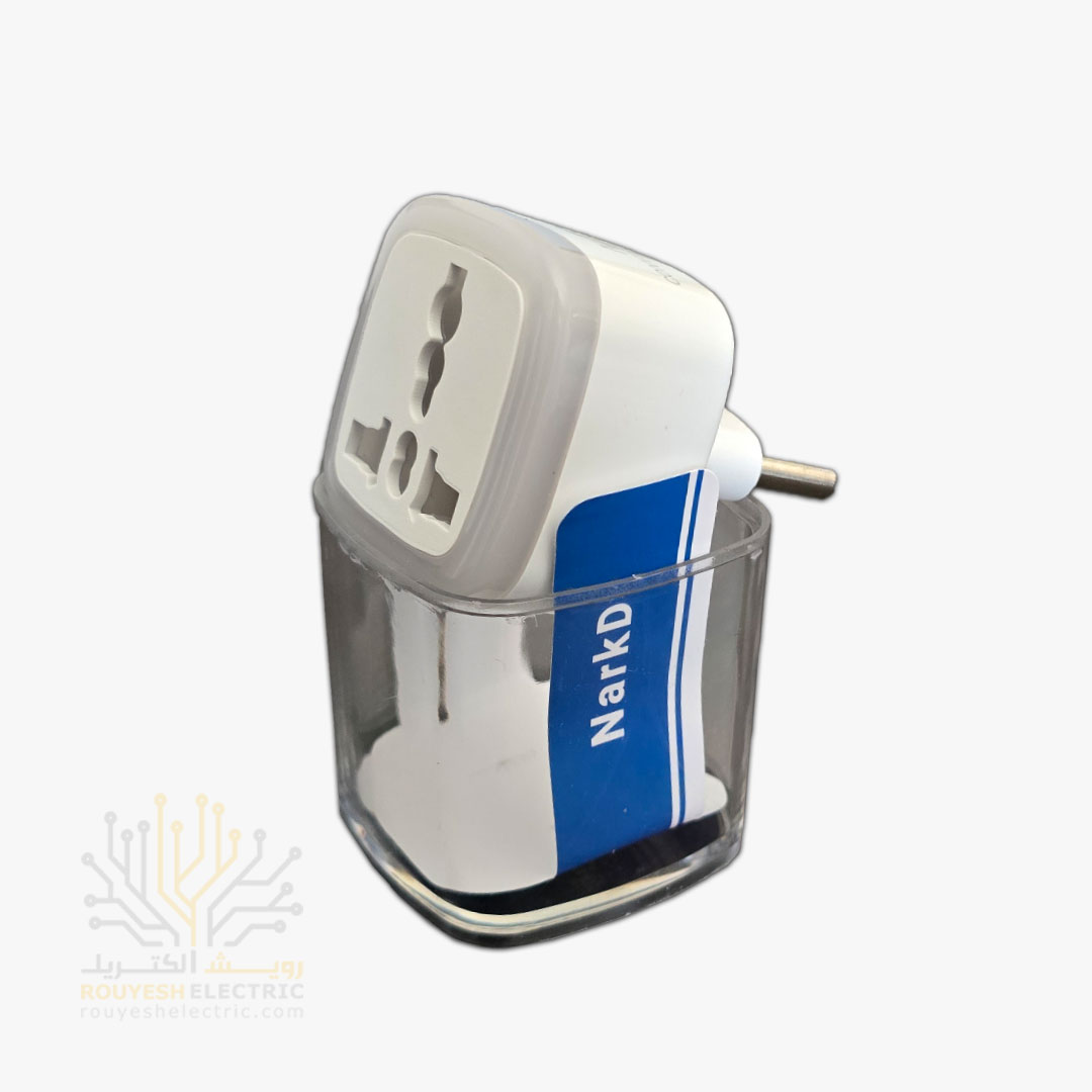 تبدیل 3 به 2 برند نارک دی 16 آمپر مدل A16P-2 قاب دار چراغ دار دوشاخه نگیر بدنه سفید