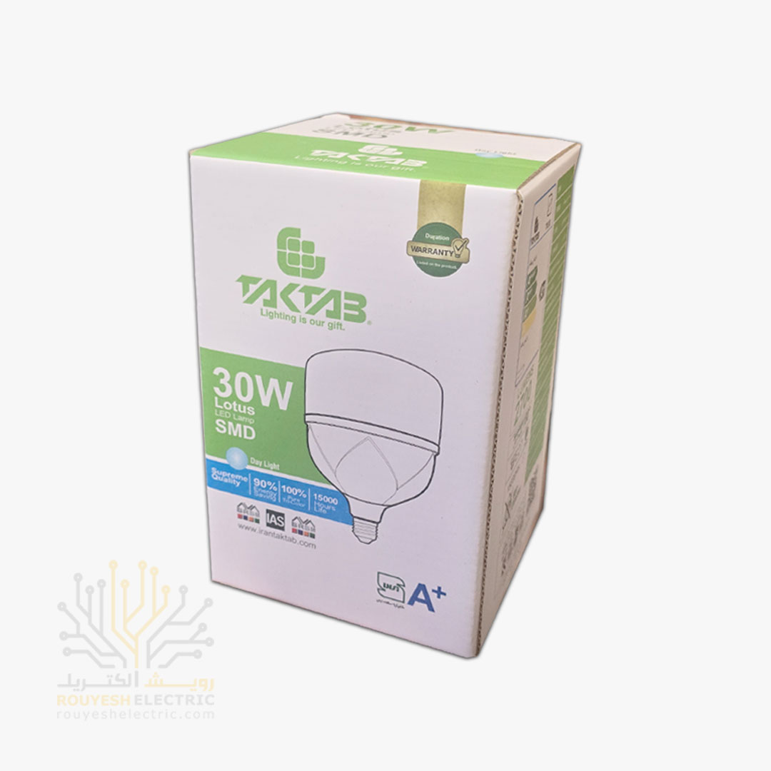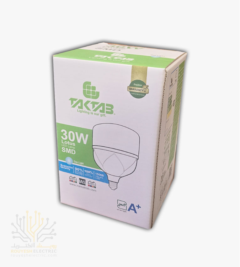 لامپ ال ای دی 30 وات استوانه برند تک تاب مهتابی موجود در شرکت ما تولید کشور ایران میباشد. از مزایای این محصول میتوان به قیمت مناسب نسبت به سایر محصولات مشابه، دارا بودن نشان استاندارد و همچنین به ضمانت حداقل 15 ماه تعویض محصول اشاره کرد که خیال مشتریان را از بابت سلامت جنسی که تهیه میکنند، آسوده میسازد.
