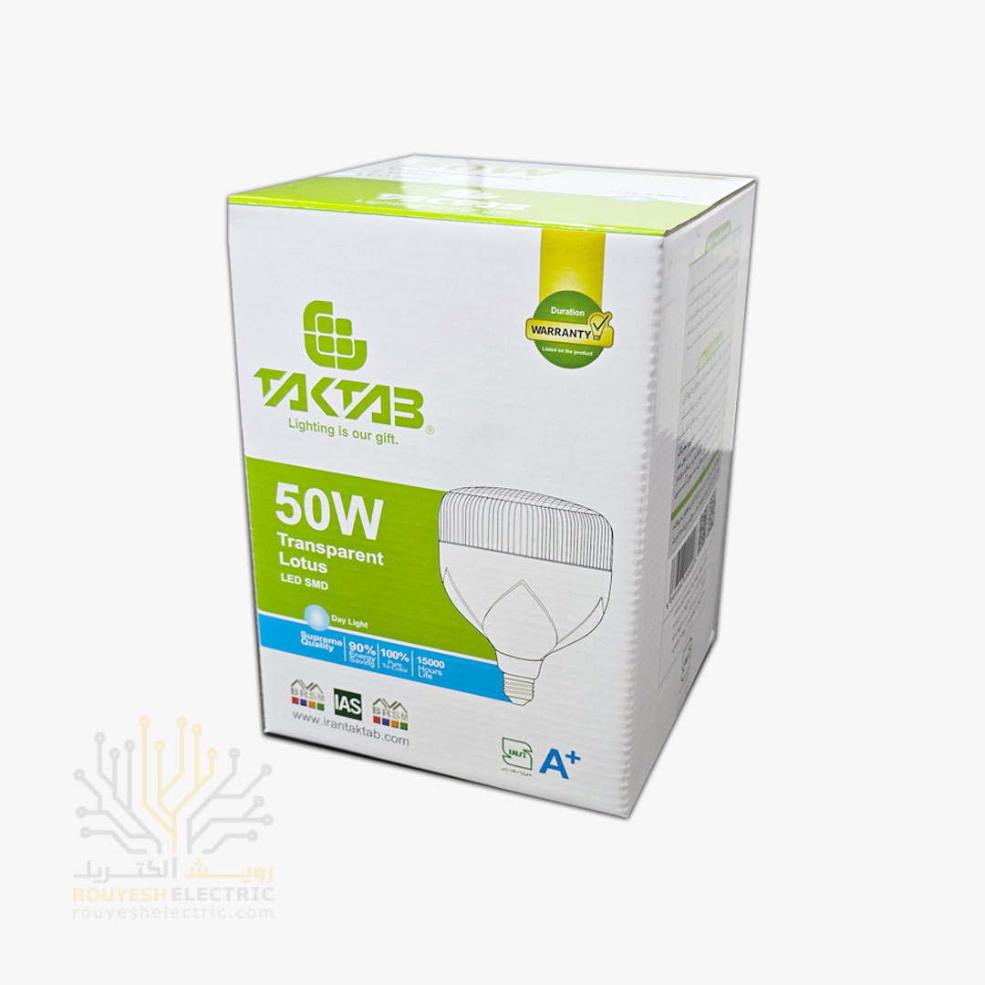 لامپ ال ای دی 50 وات استوانه شفاف برند تک تاب مهتابی