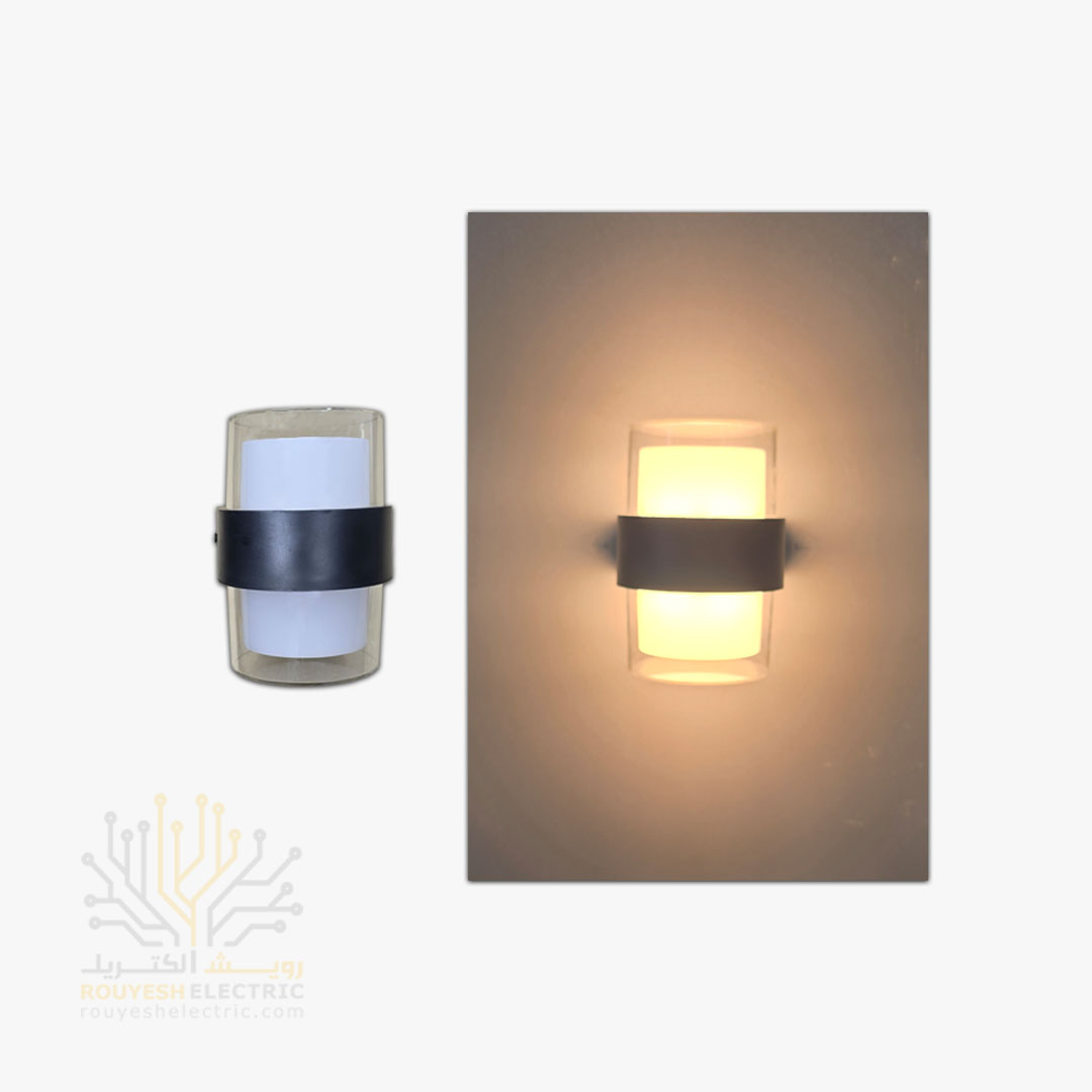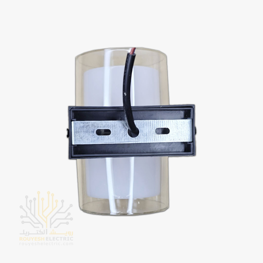 چراغ دیواری دکوراتیو 12 وات برند ایران مهر مدل استوانه دو طرفه کد ایران 19 بدنه مشکی نور آفتابی