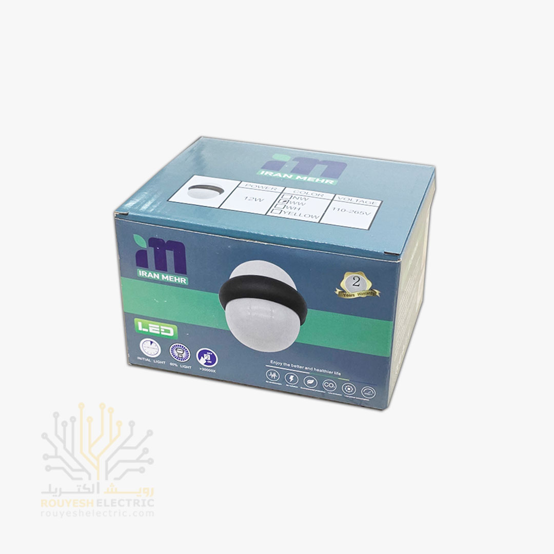 چراغ دیواری دکوراتیو 12 وات برند ایران مهر کد ایران 75 بدنه مشکی نور یخی