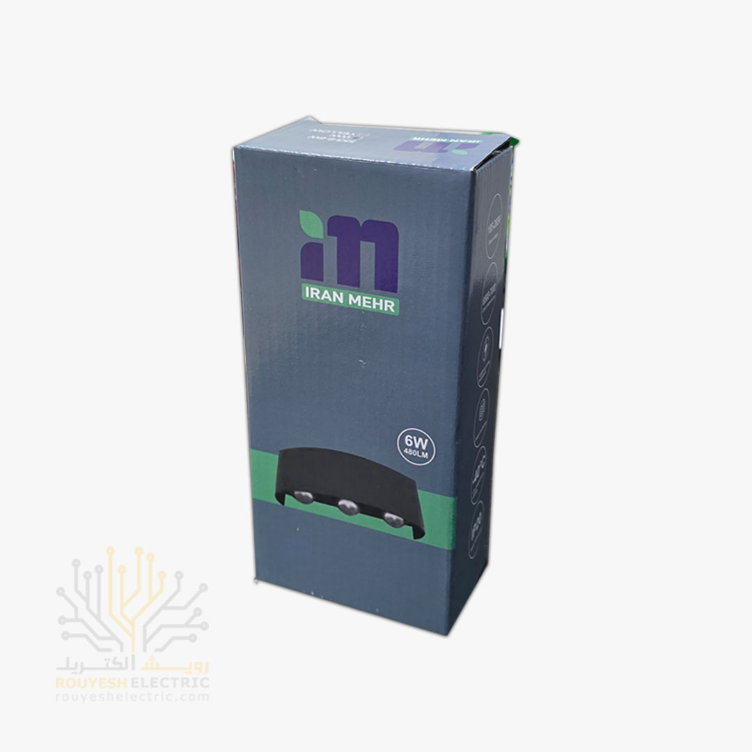 چراغ دیواری دکوراتیو 6 وات برند ایران مهر مدل قطاری کد ایران 03 بدنه ABS مشکی نور آفتابی