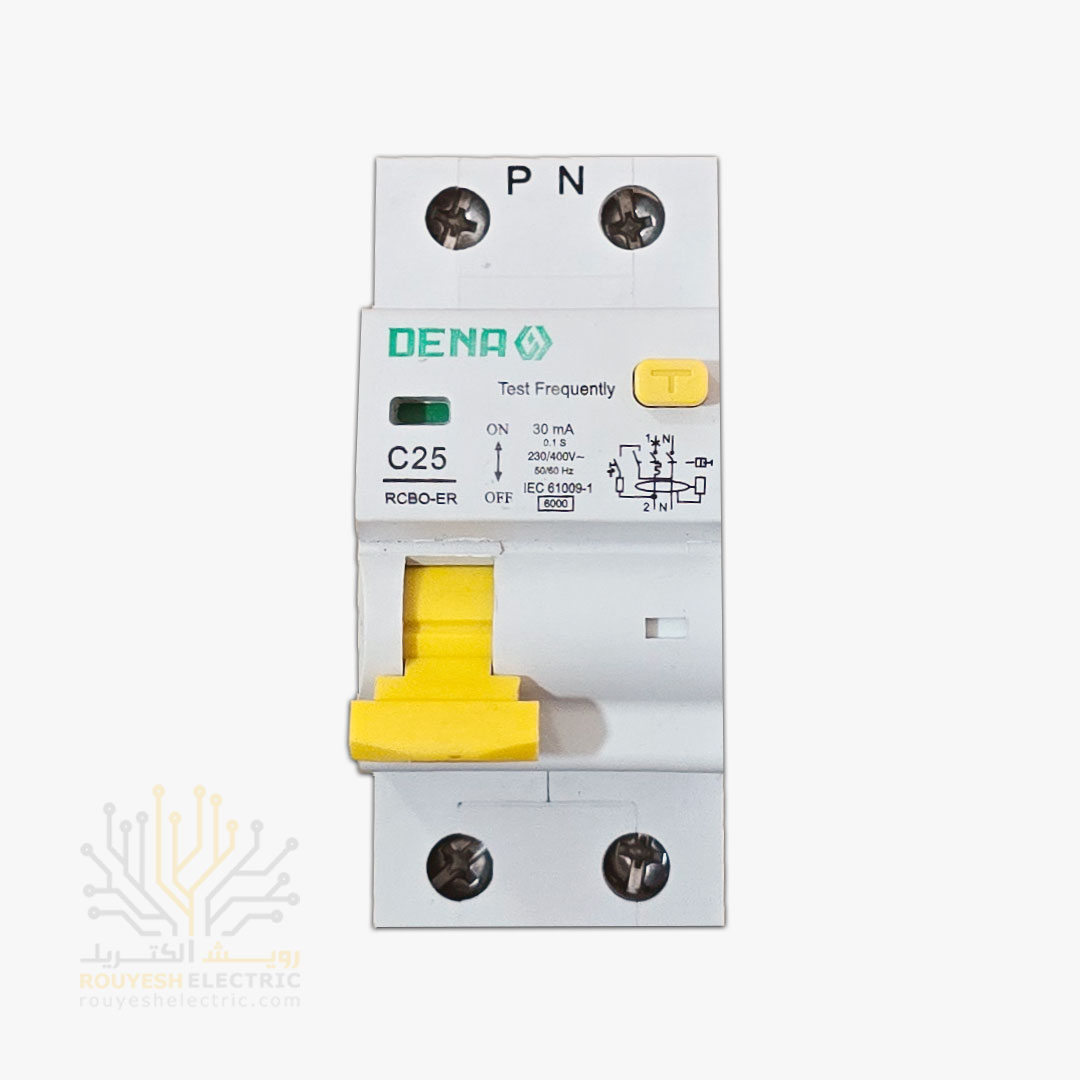 کلید محافظ جان دوپل برند دنا تکفاز مدل RCBO الکترونیک 25 آمپر