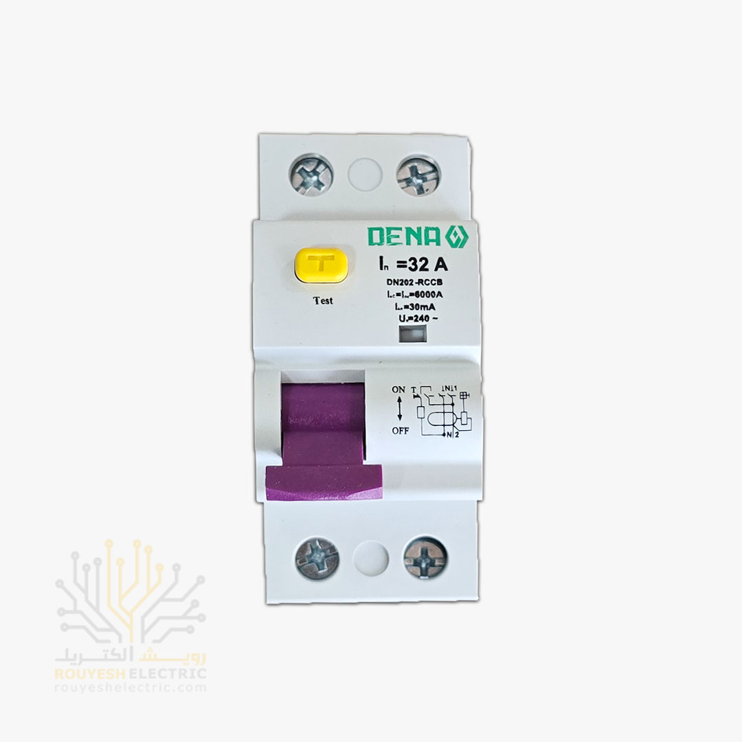 کلید محافظ جان دوپل برند دنا تکفاز مدل RCCB مگنتیک 32 آمپر