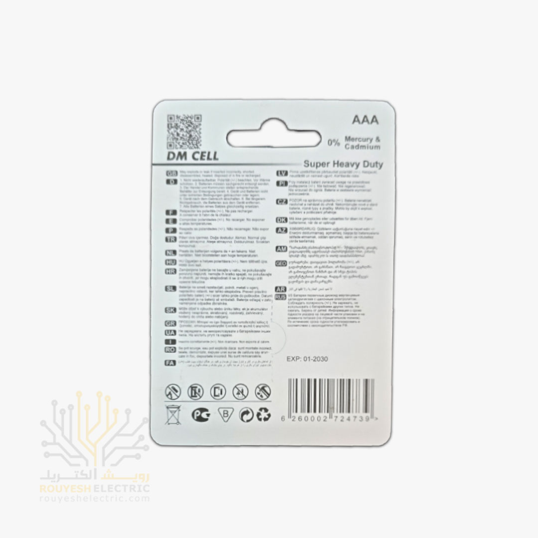باطری نیم قلمی معمولی برند دی ام سل کارت 2 تایی