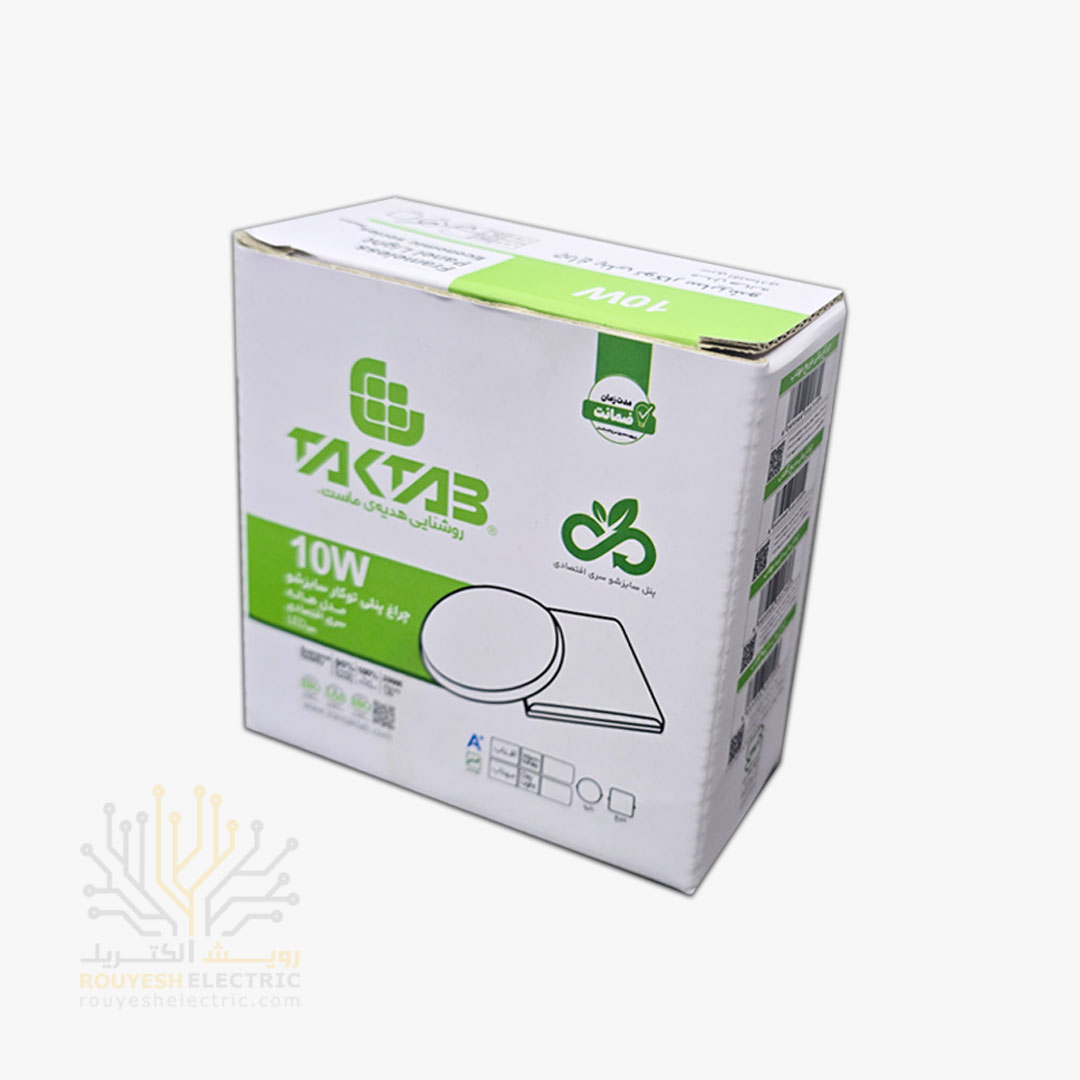 پنل سقفی توکار فول لایت 10 وات برند تک تاب مدل هاله فنر متغیر دایره استاندارد رنگ آفتابی