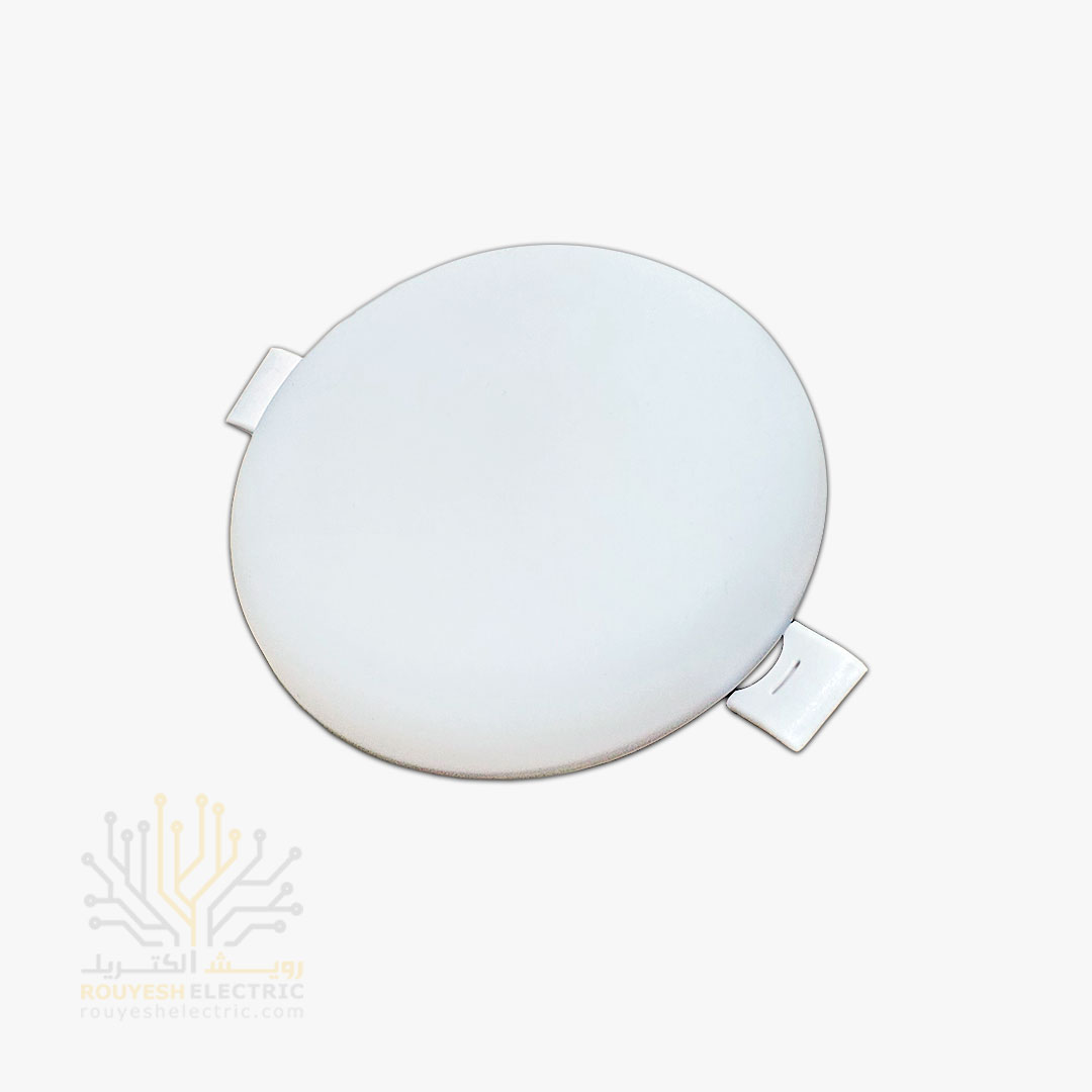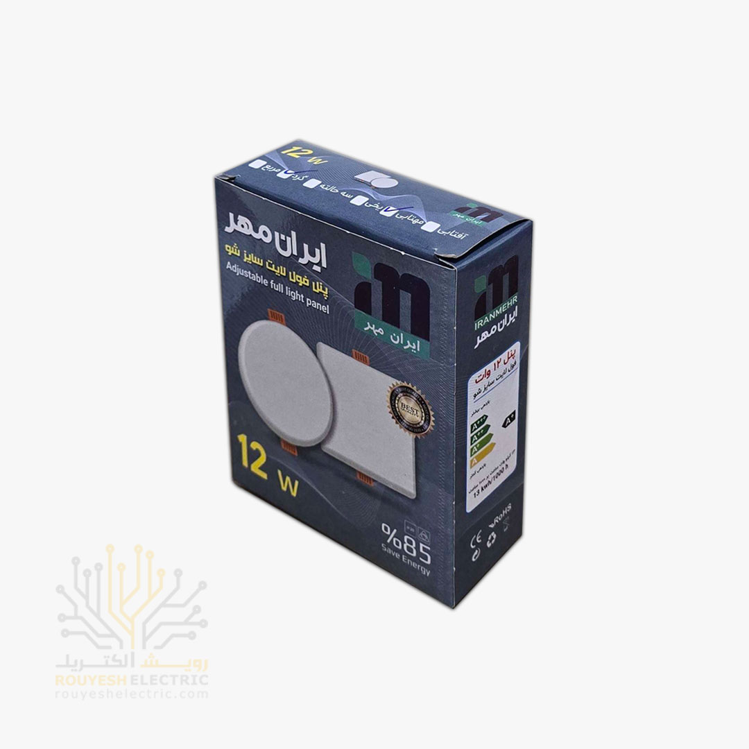 پنل سقفی توکار فول لایت 12 وات برند ایران مهر فنر متغیر دایره استاندارد رنگ مهتابی