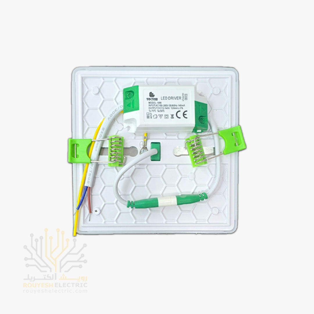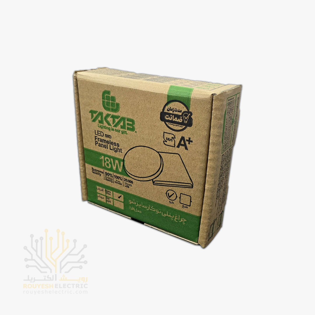 پنل سقفی توکار 18 وات برند تک تاب مدل فول لایت فنر متغیر مربع استاندارد آفتابی