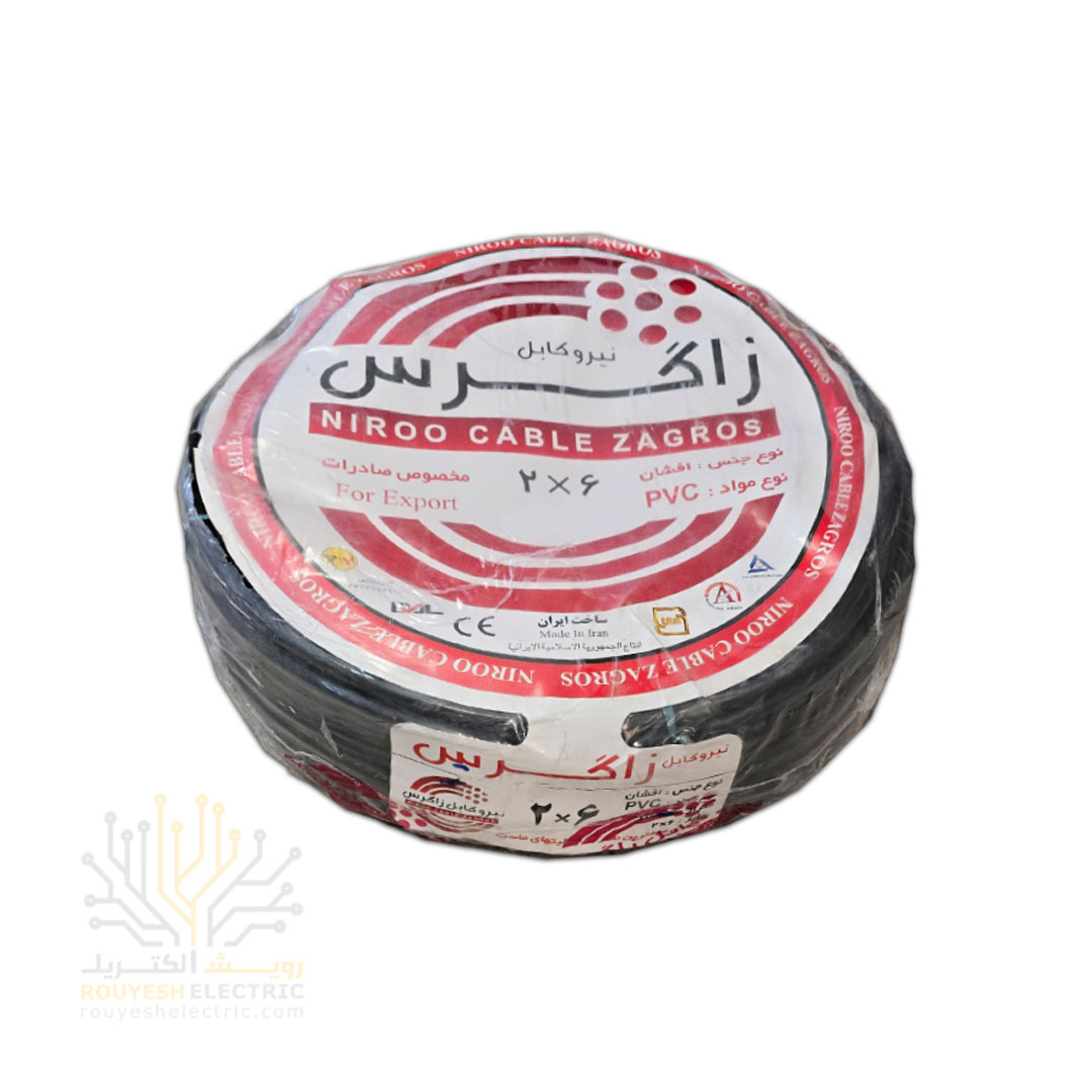 کابل برق نمره 2x6 برند نیرو کابل زاگرس استاندارد حلقه 70 متری