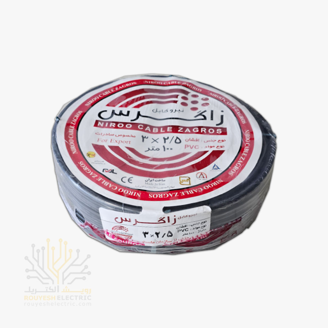 کابل برق نمره 3x2/5 برند نیرو کابل زاگرس استاندارد حلقه 100 متری