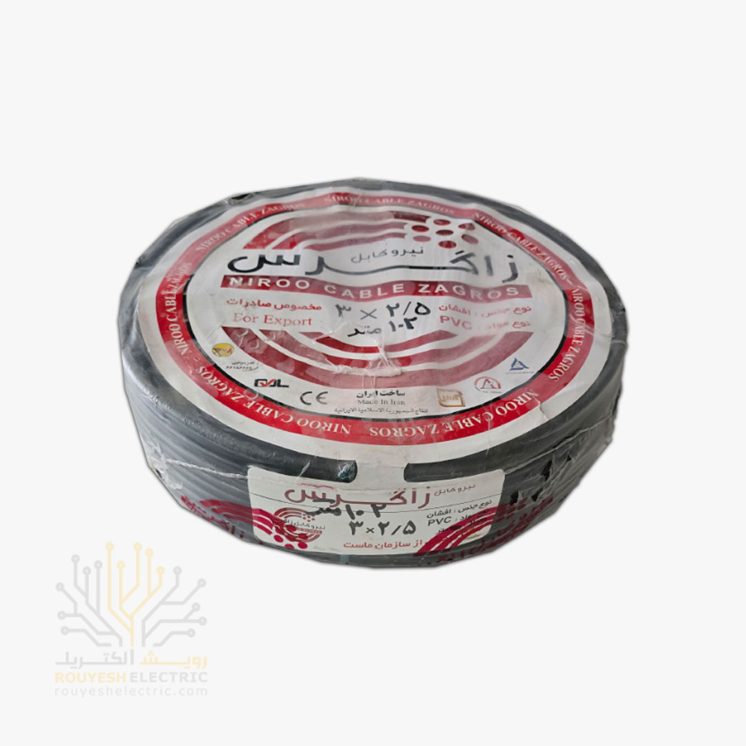 کابل برق نمره 3x2/5 برند نیرو کابل زاگرس استاندارد حلقه 102 متری