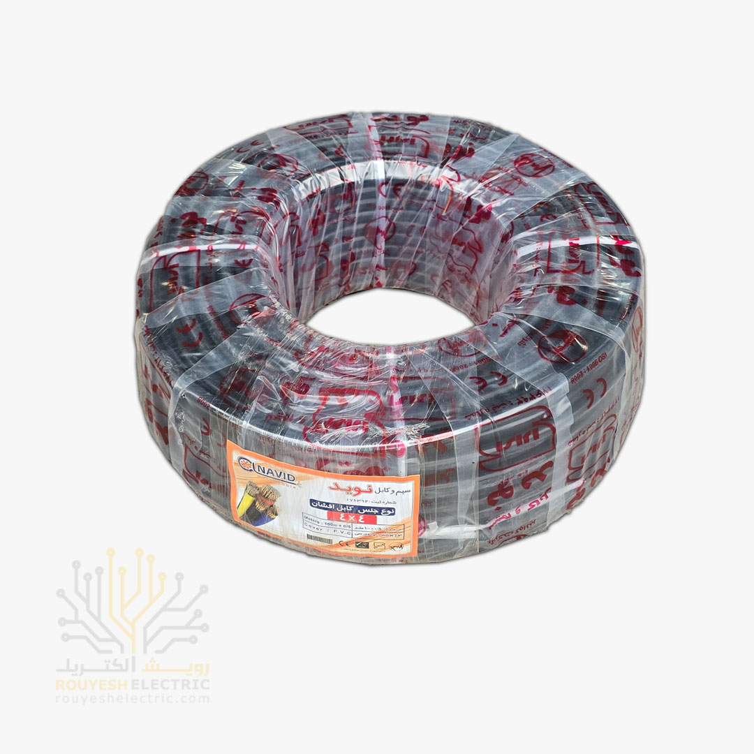کابل برق نمره 4x4 برند نوید استاندارد حلقه 100 متری