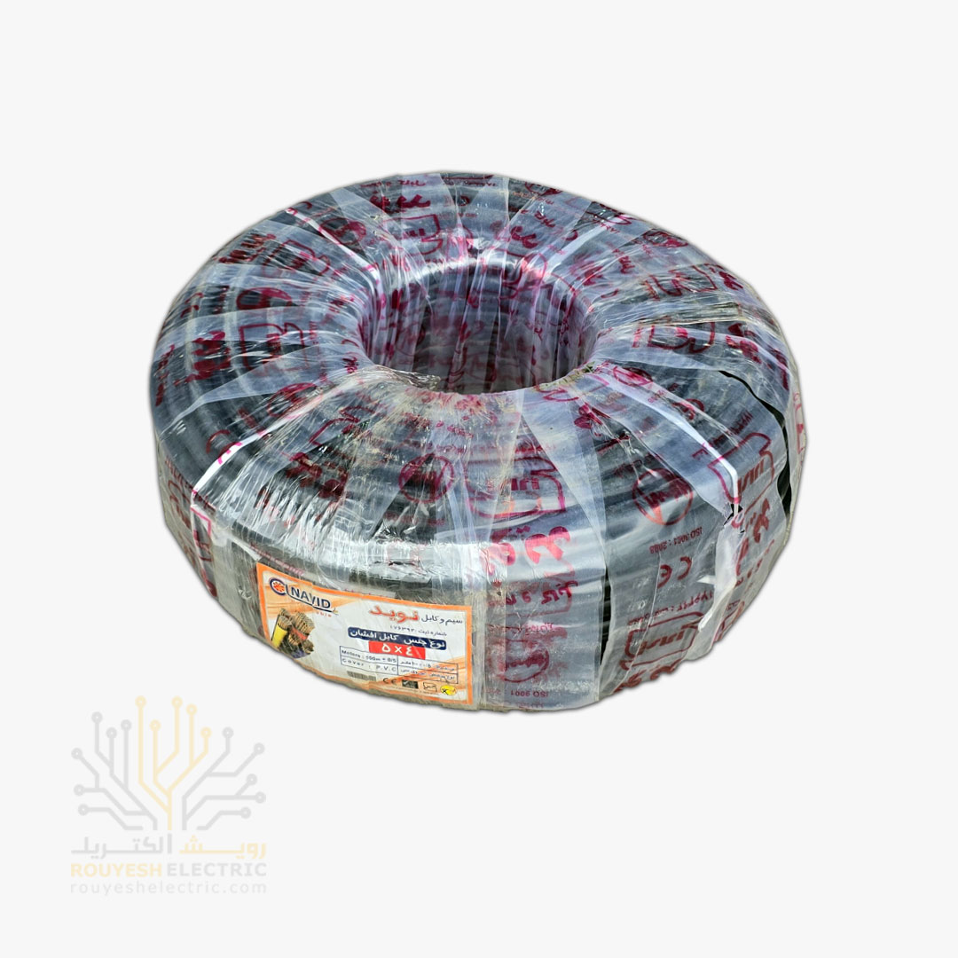 کابل برق نمره 5x4 برند نوید استاندارد حلقه 100 متری