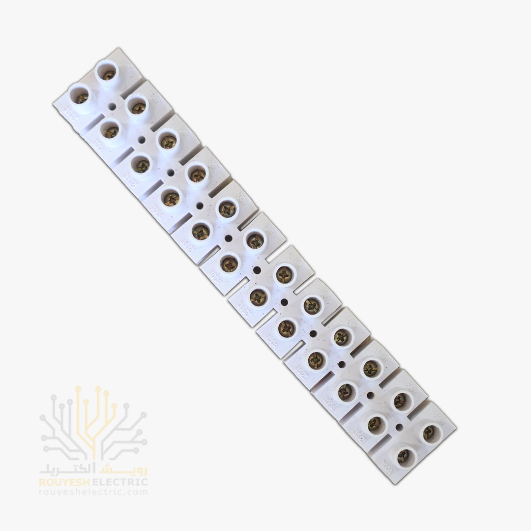 ترمینال نمره 35، یک قطعه اتصال الکتریکی است که به طور خاص برای سیمها و کابلهایی با سطح مقطع تا 35 میلیمتر مربع طراحی شده است. این ترمینال از پلاستیک با کیفیت بالا ساخته شده که عایق الکتریسیته است و مقاومت خوبی در برابر حرارت و فشارهای مکانیکی دارد.
