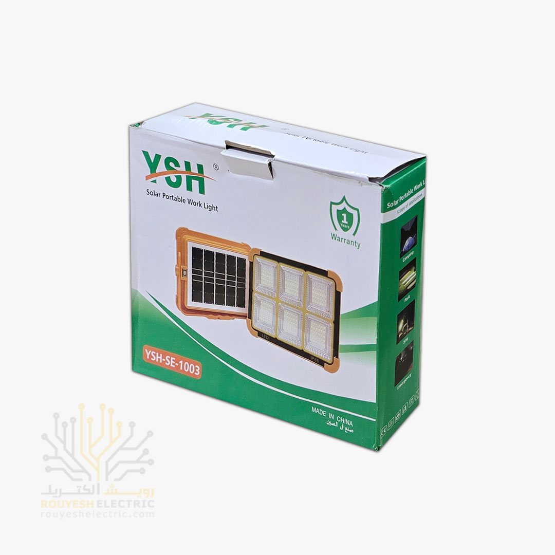 چراغ اضطراری پروژکتوری 180 SMD برند وای اس اچ مدل SE-1003 چهار حالته 400 وات دارای پنل خورشیدی