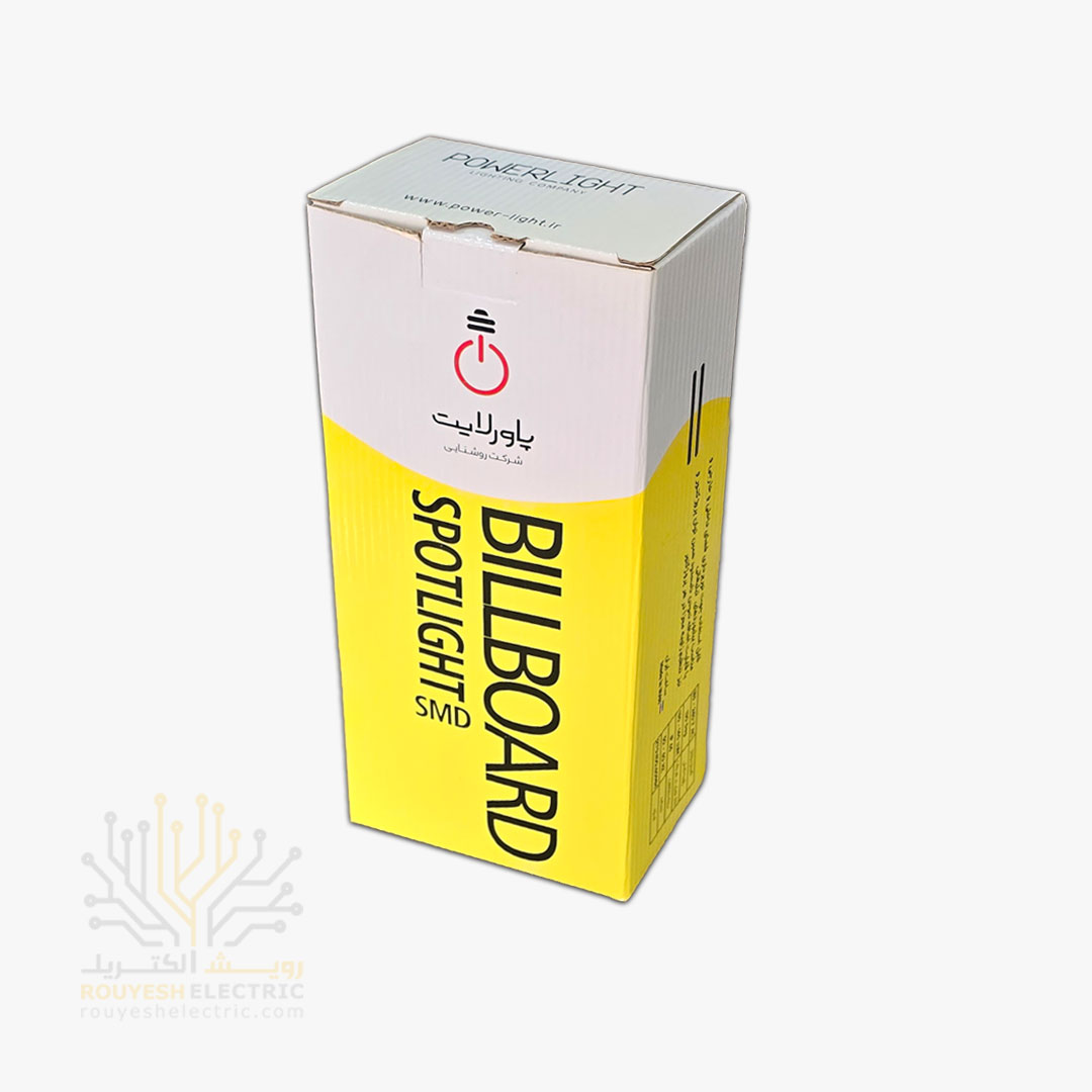 پروژکتور 50 وات SMD برند پاور لایت مدل بیلبوردی بدون درایور بدنه مشکی مهتابی