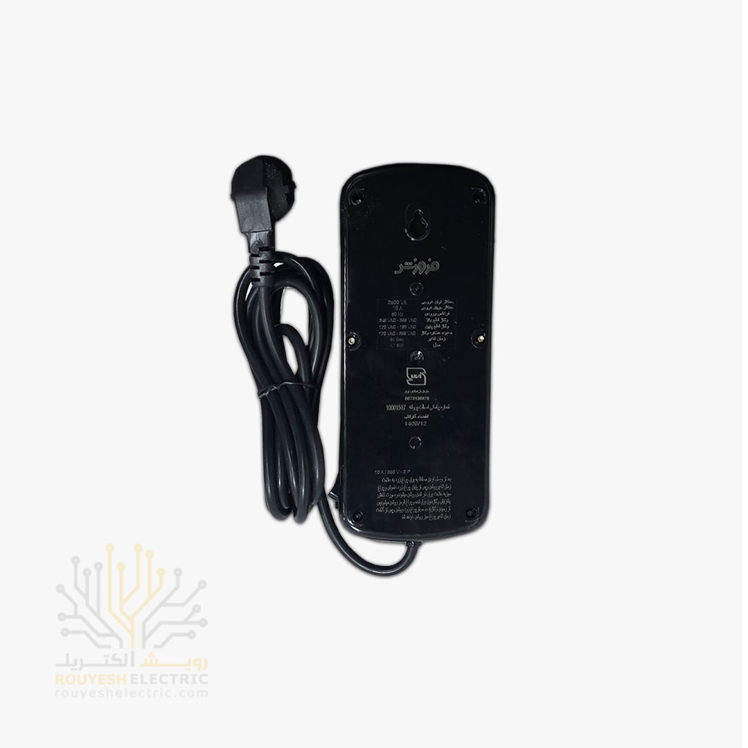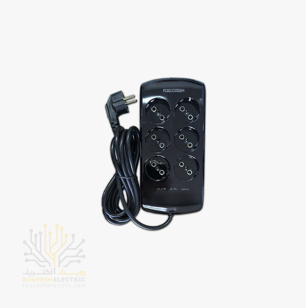 محافظ برق کامپیوتر سیار شش خانه برند فروزش مدل LT600D لوتوس بدون ارت بدون کلید بدنه مشکی دیجیتال 4/8 متری