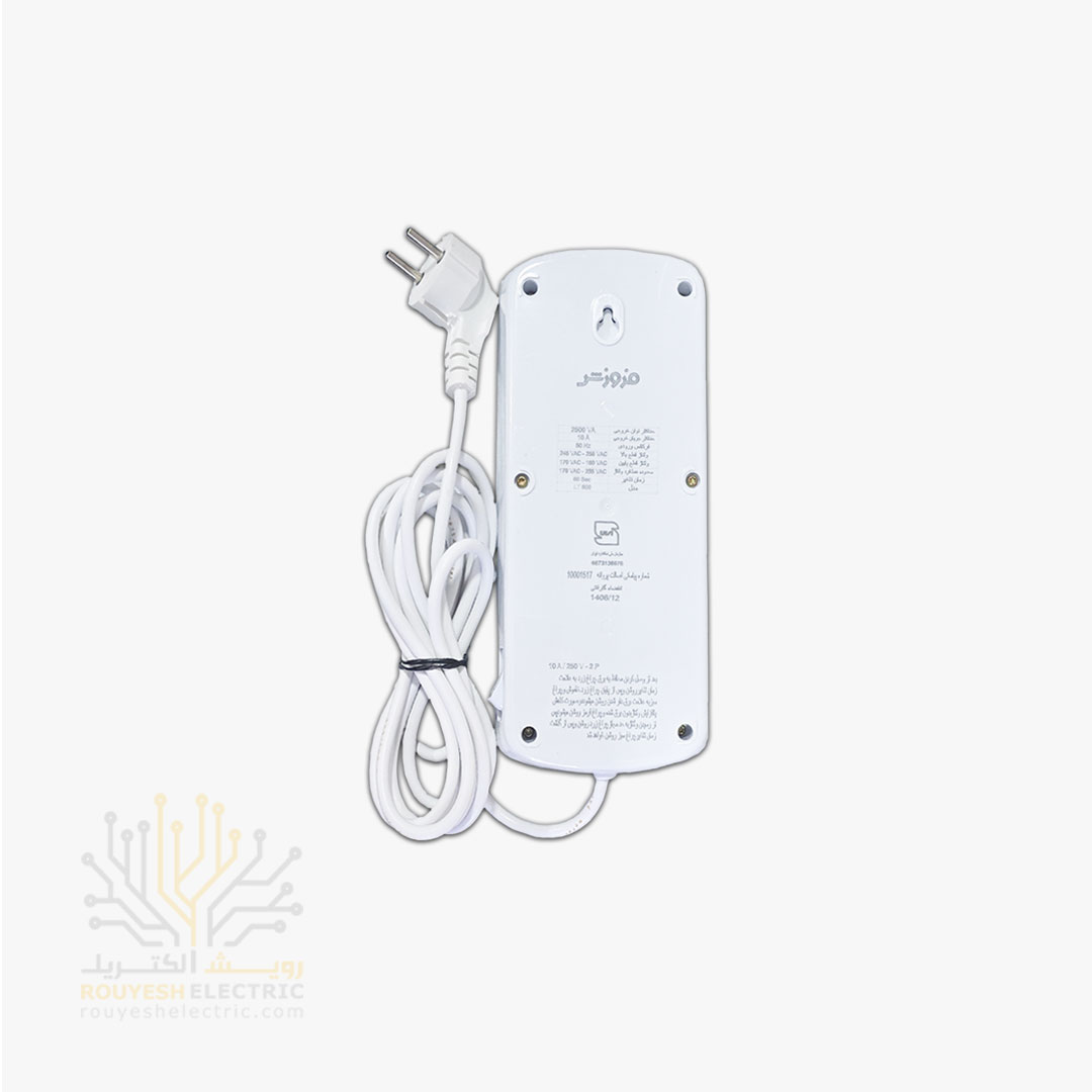 محافظ برق کامپیوتر سیار شش خانه برند فروزش مدل LT600 لوتوس بدون ارت بدون کلید بدنه سفید آنالوگ 4/8 متری