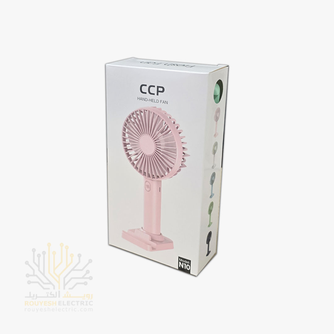 پنکه شارژی دستی برند سی سی پی مدل N10 سه حالته پایه دار