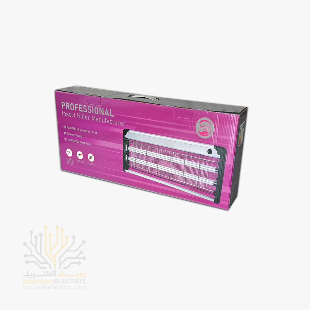 این دستگاه یک حشرهکش برقی آویزی با دو لامپ فلورسنت ۲۰ وات است که برای محیطهای داخلی تا ۹۰ متر مربع طراحی شده. با استفاده از نور فرابنفش (UV)، حشرات پروازی مانند پشه، مگس، زنبور و پروانه را جذب کرده و بهصورت کاملاً بهداشتی و بدون استفاده از مواد شیمیایی از بین میبرد. مناسب برای منازل، فروشگاهها، رستورانها، اتاقکهای نگهبانی و فضاهای عمومی است.