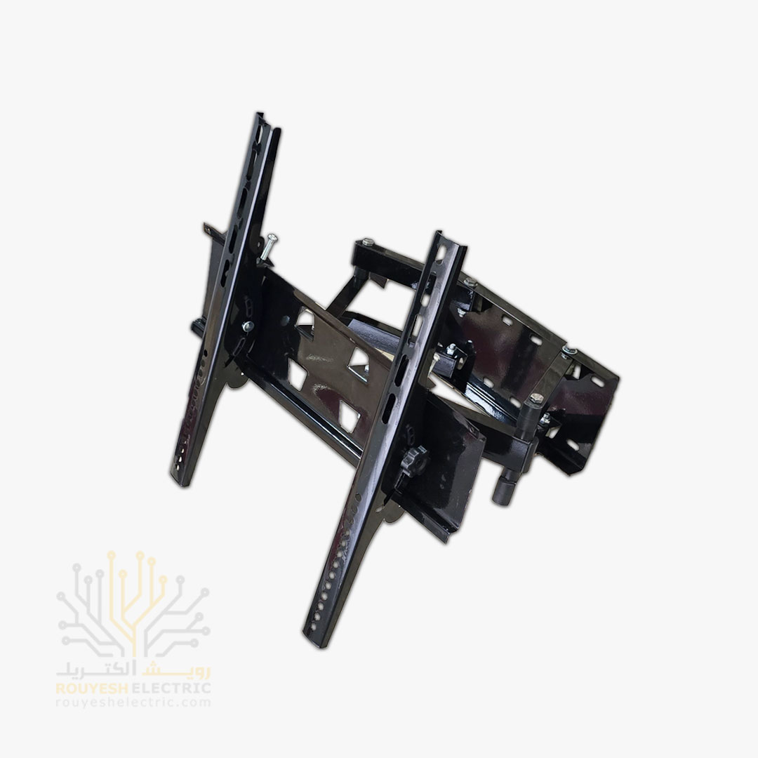 این پایه با اتصال به دیوار از طریق پیچ و رولپلاکهای مخصوص، تلویزیون را بهصورت ایمن نگه میدارد. دو بازوی متحرک آن امکان حرکت تلویزیون را در جهات مختلف فراهم میکنند:
