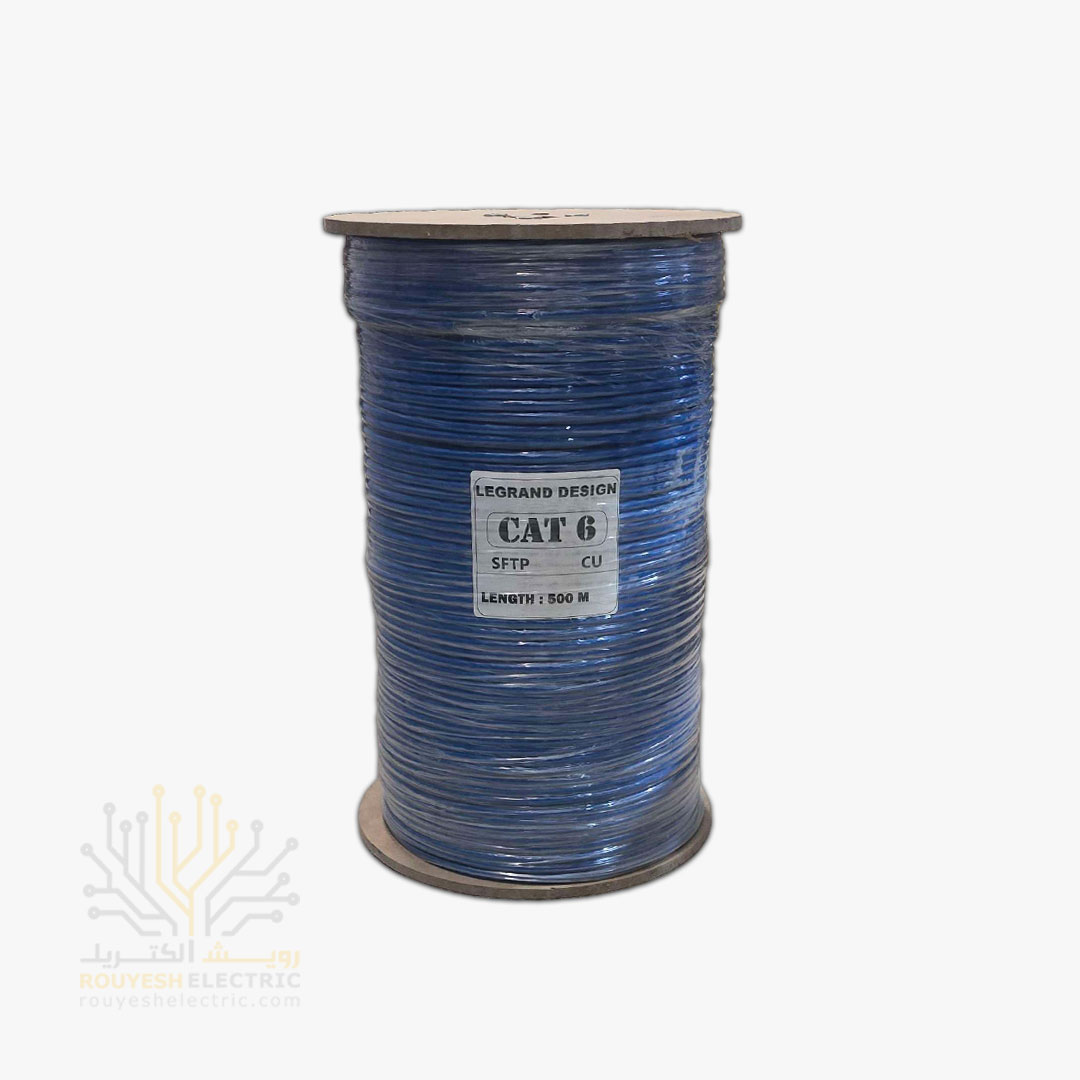 کابل شبکه cat six برند تک کابل کرمان مدل لگرند شیلد دار sftp قرقره 500 متری