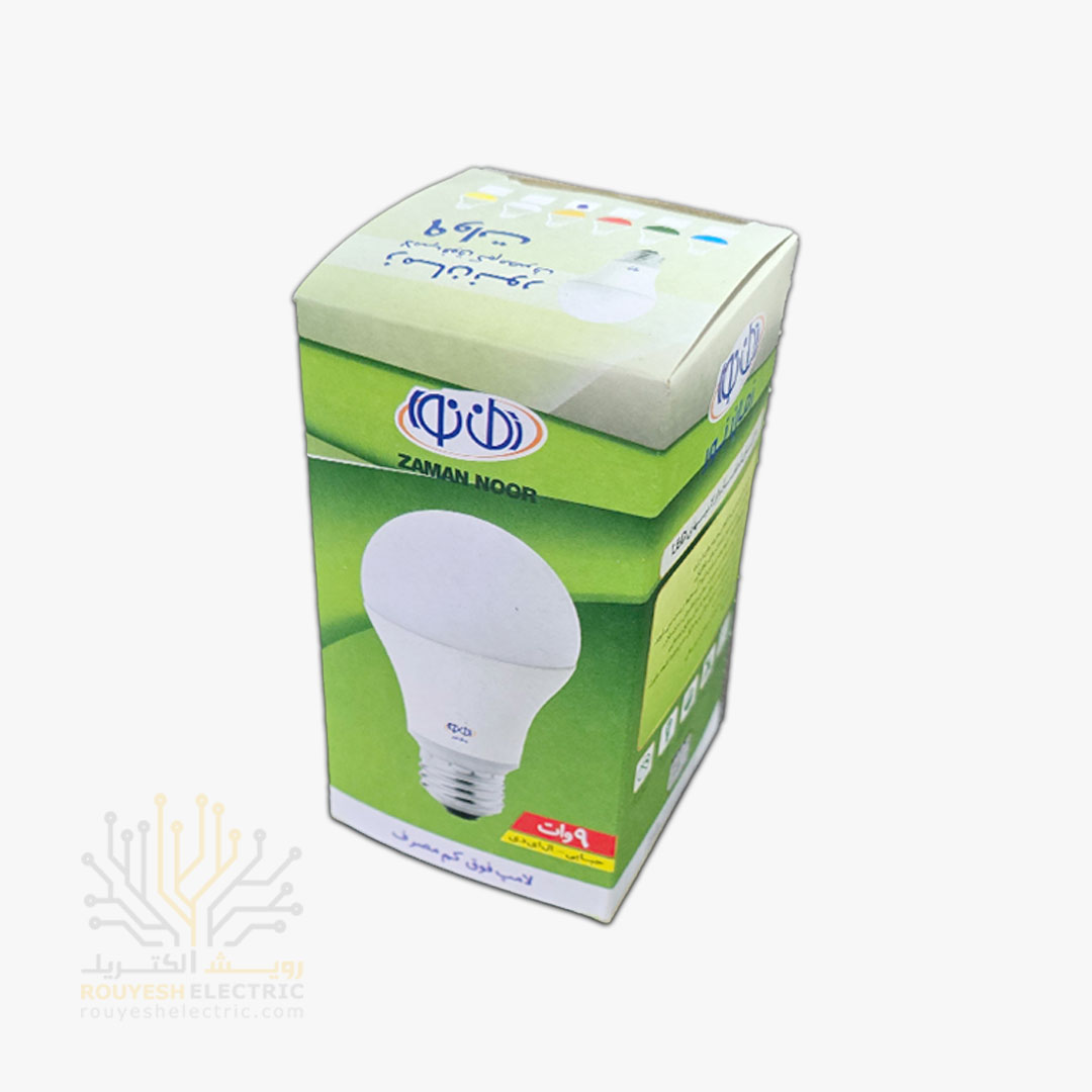 لامپ ال ای دی 9 وات حبابی برند زمان نور انبه ای