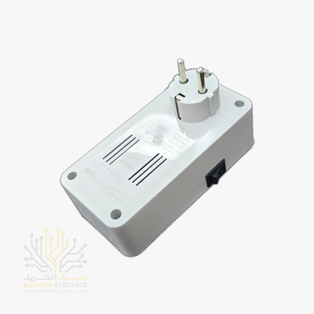 محافظ برق لباسشویی و ظرفشویی دیواری تک خانه برند فروزش مدل FR140 ارتدار کلید دار بدنه سفید آنالوگ