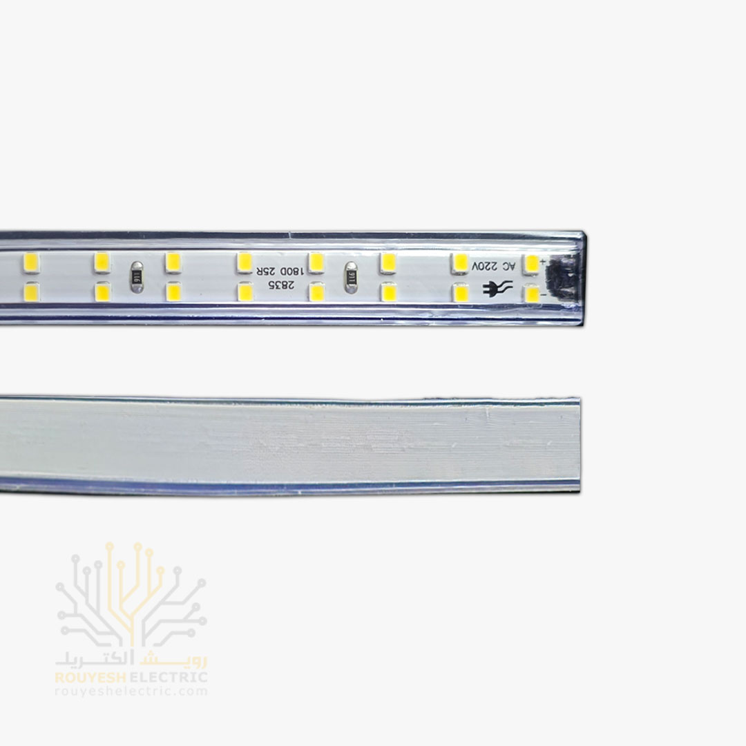 ریسه شلنگی وایرلس برند شارو لایت 28x35 دو لاین تراکم 180 برش 20 سانت 13 میل رنگ مهتابی 100 متری