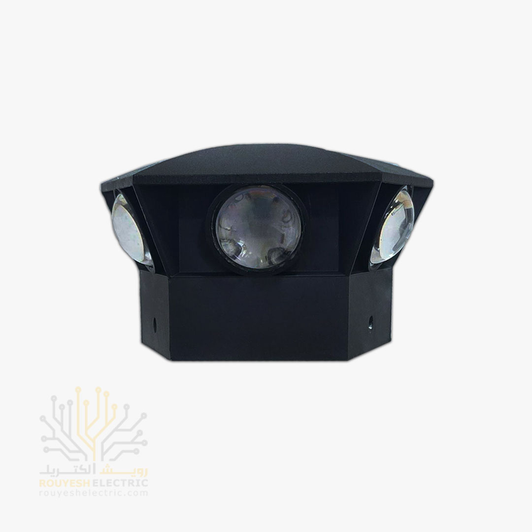 چراغ دیواری دکوراتیو 6 وات برند ایران مهر مدل کلبه ای دو طرفه کد ایران 50 بدنه مشکی نور نچرال