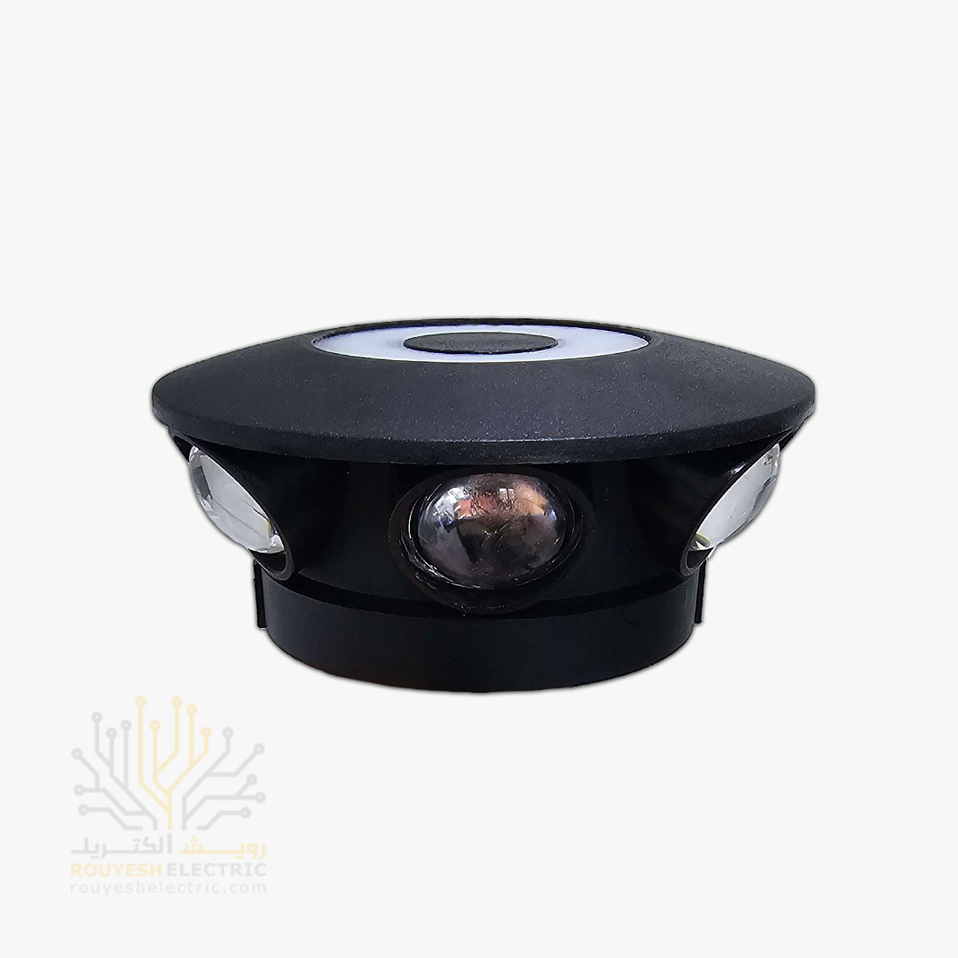 چراغ دیواری دکوراتیو 6 وات برند ایران مهر مدل کلبه ای دو طرفه کد ایران 50 بدنه مشکی نور نچرال
