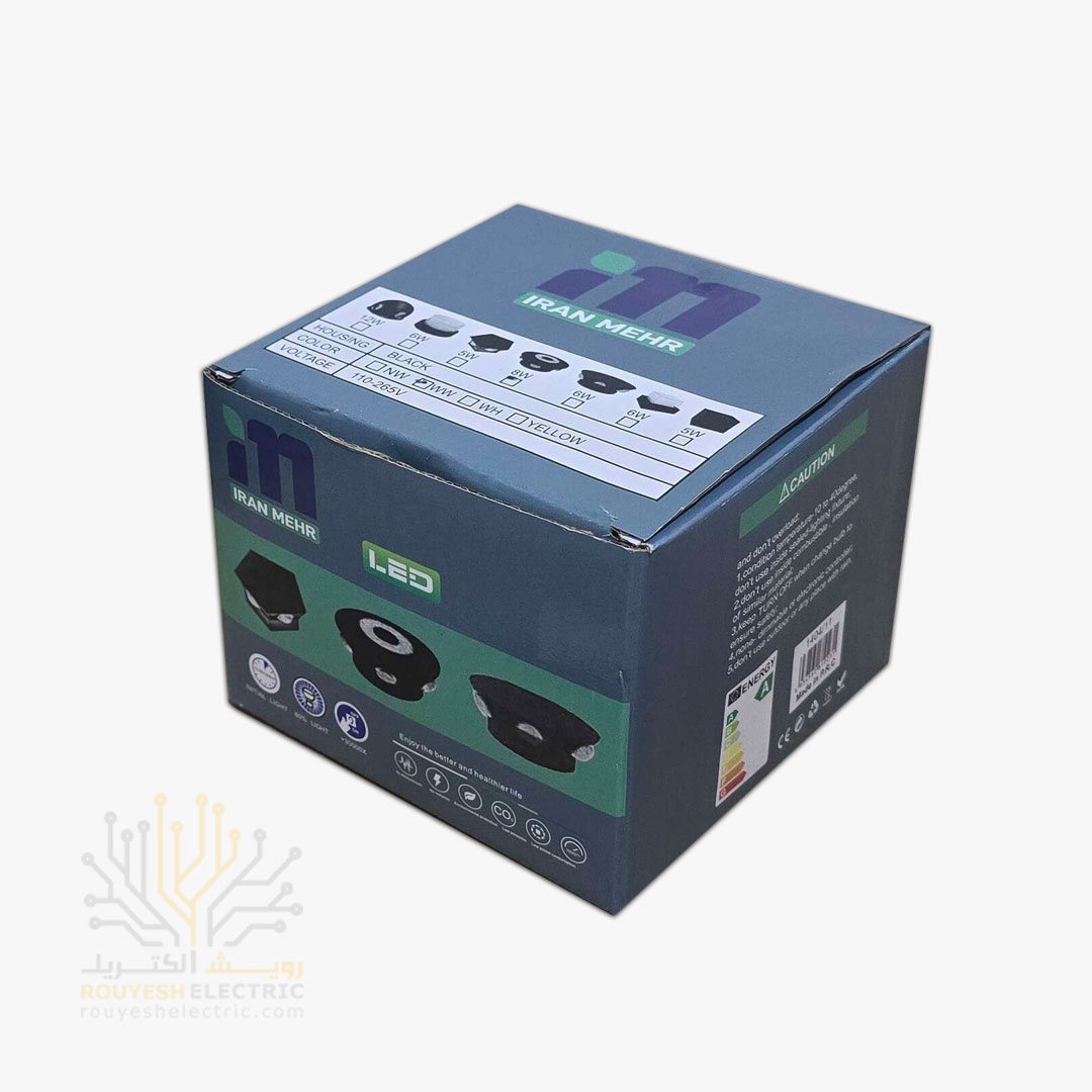 چراغ دکوراتیو 8 وات برند ایران مهر شش طرفه کد ایران 45 بدنه مشکی نور آفتابی 6 ماه گارانتی