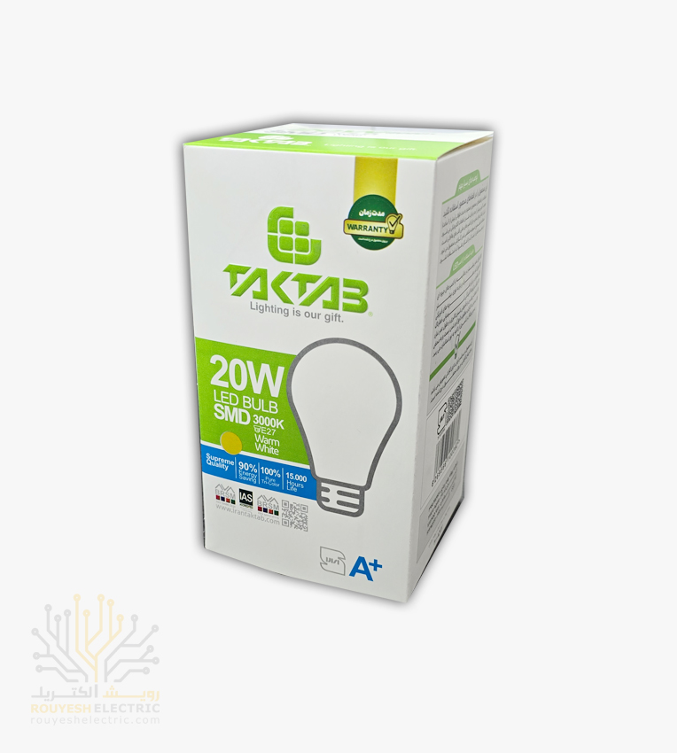 لامپ ال ای دی 20 وات حبابی برند تک تاب مهتابی